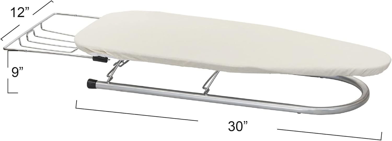 Household Essentials Tabletop Ironing Board, Compact Ironing Board with Iron Rest, Includes Door Hang, Perfect for Dorms and Small Spaces, 12 x 30", Silver