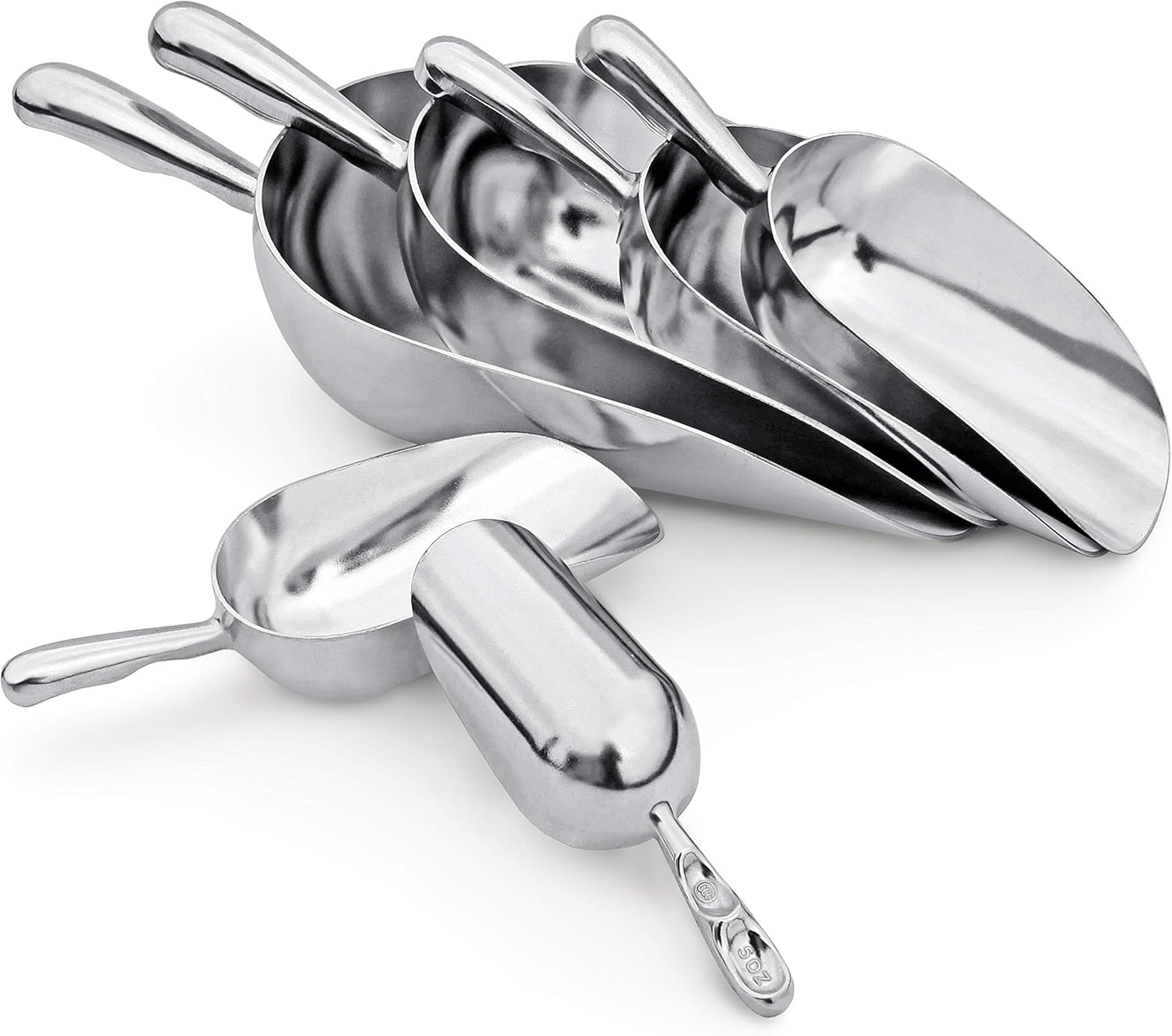 - Commercial-Grade Aluminum utility scoop great for ice, sugar, flour, popcorn, and candy.