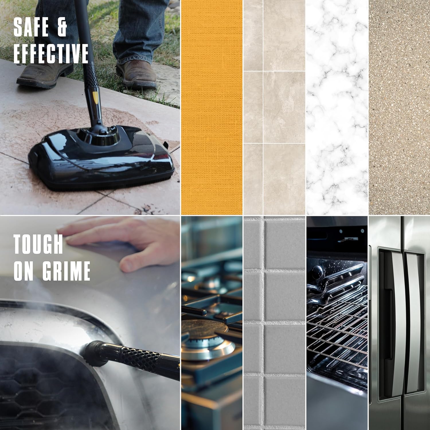 - CHEMICAL-FREE CLEANING β Naturally deep clean without the use of harsh chemicals using hot, pressured steam to eliminate grease, grime, and stains from a wide range of surfaces including tile, grout, granite, laminate, appliances, grills, autos, and more.
