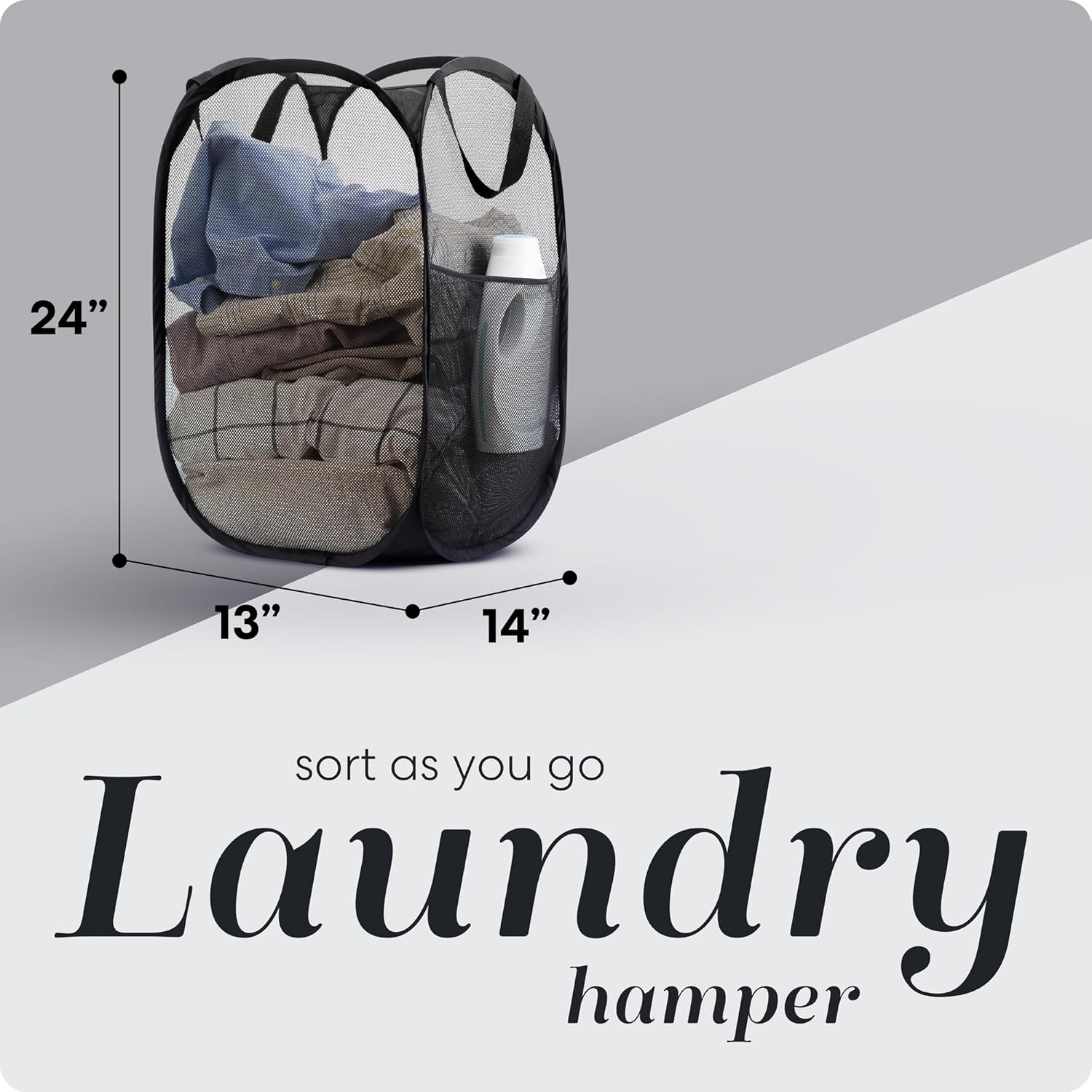 Handy Laundry Collapsible Mesh Pop Up Hamper with Wide Opening and Side Pocket - Breathable, Sturdy, Foldable, and Space-Saving Design for Clothes and Storage (Black)