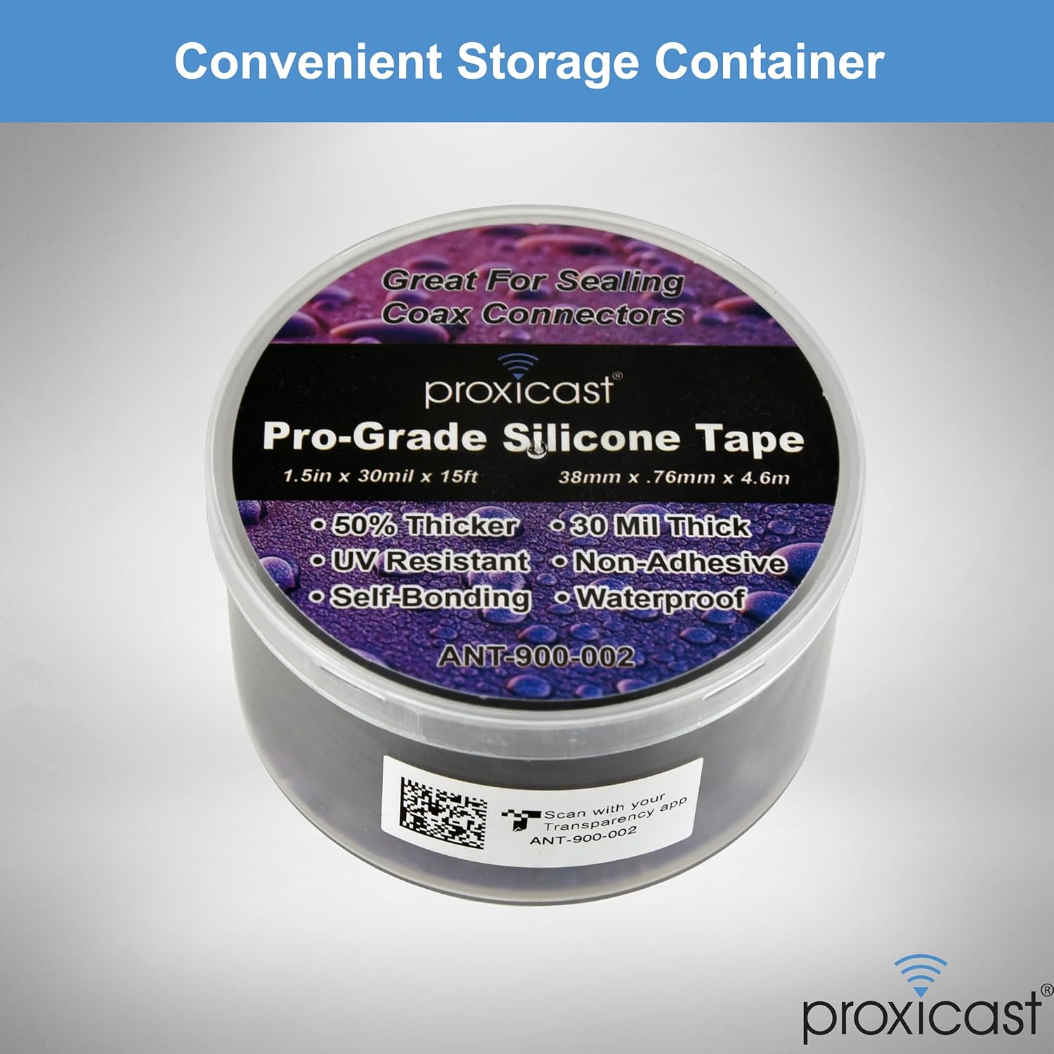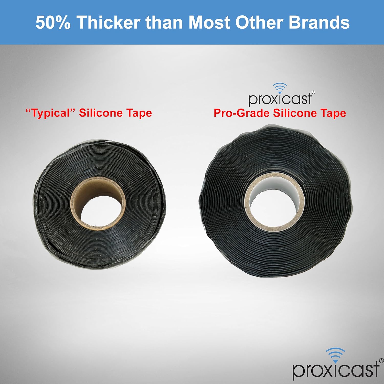 Proxicast Pro-Grade Extra Strong 30mil Weatherproof Self-Fusing Silicone Rubber Sealing Tape For Outdoor Antenna Coax & Electrical Cables, Hose/Pipe Leaks & Emergency Repairs (1.5" x 15' roll) - Black