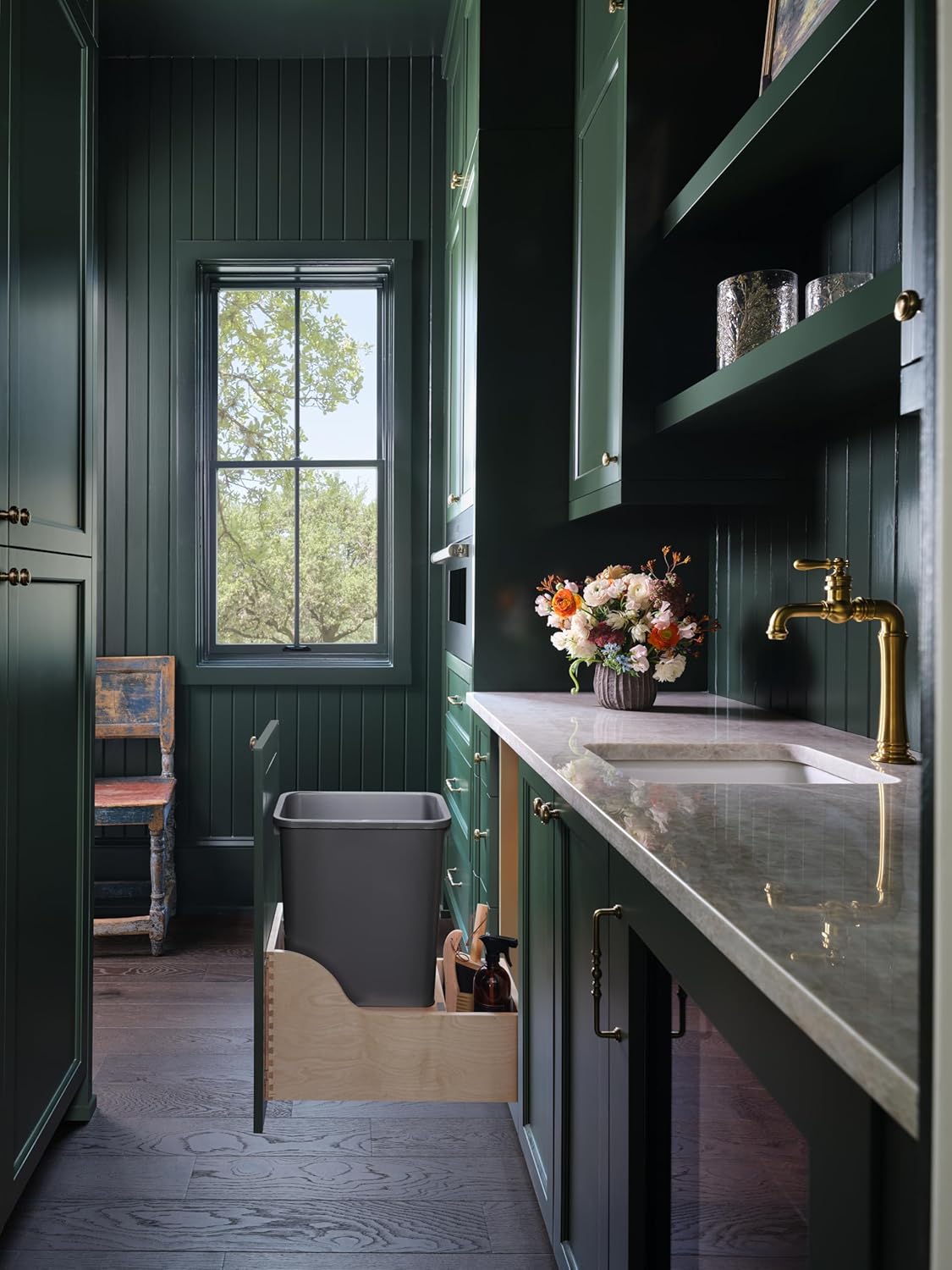 - Pullout Waste Bin: Features a BLUMotion undermount soft-close full-extension concealed slide system that glides in and out with ease and keeps dirt and debris away; Constructed with dovetail maple wood construction