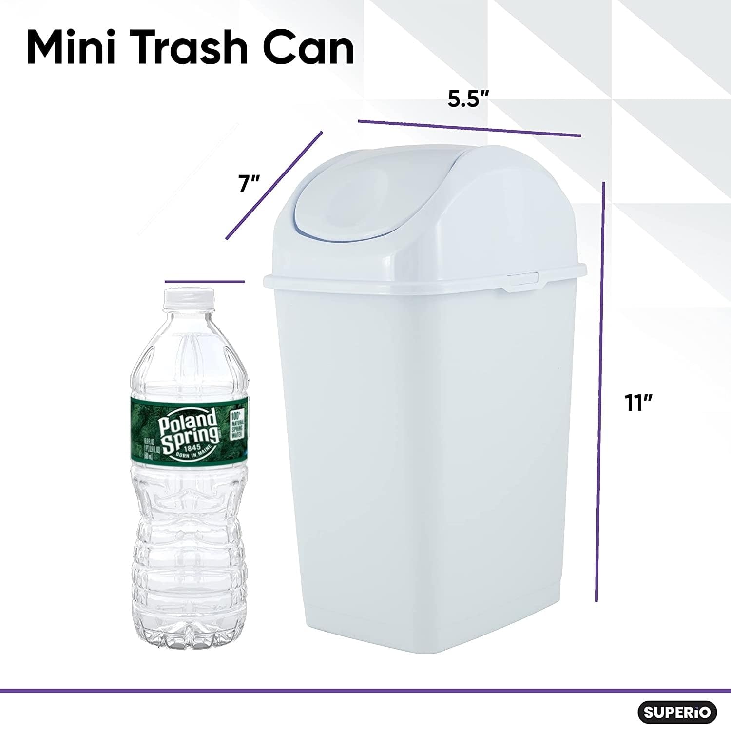 Superio Mini Desktop Trash Can with Swing Top Lid Portable Plastic Garbage Can for Countertop, Desktop, Make up Vanity, Bathroom, Car, Under Sink, Dorm, Compact Waste Bin 5 L, 1.25 Gal. (White)