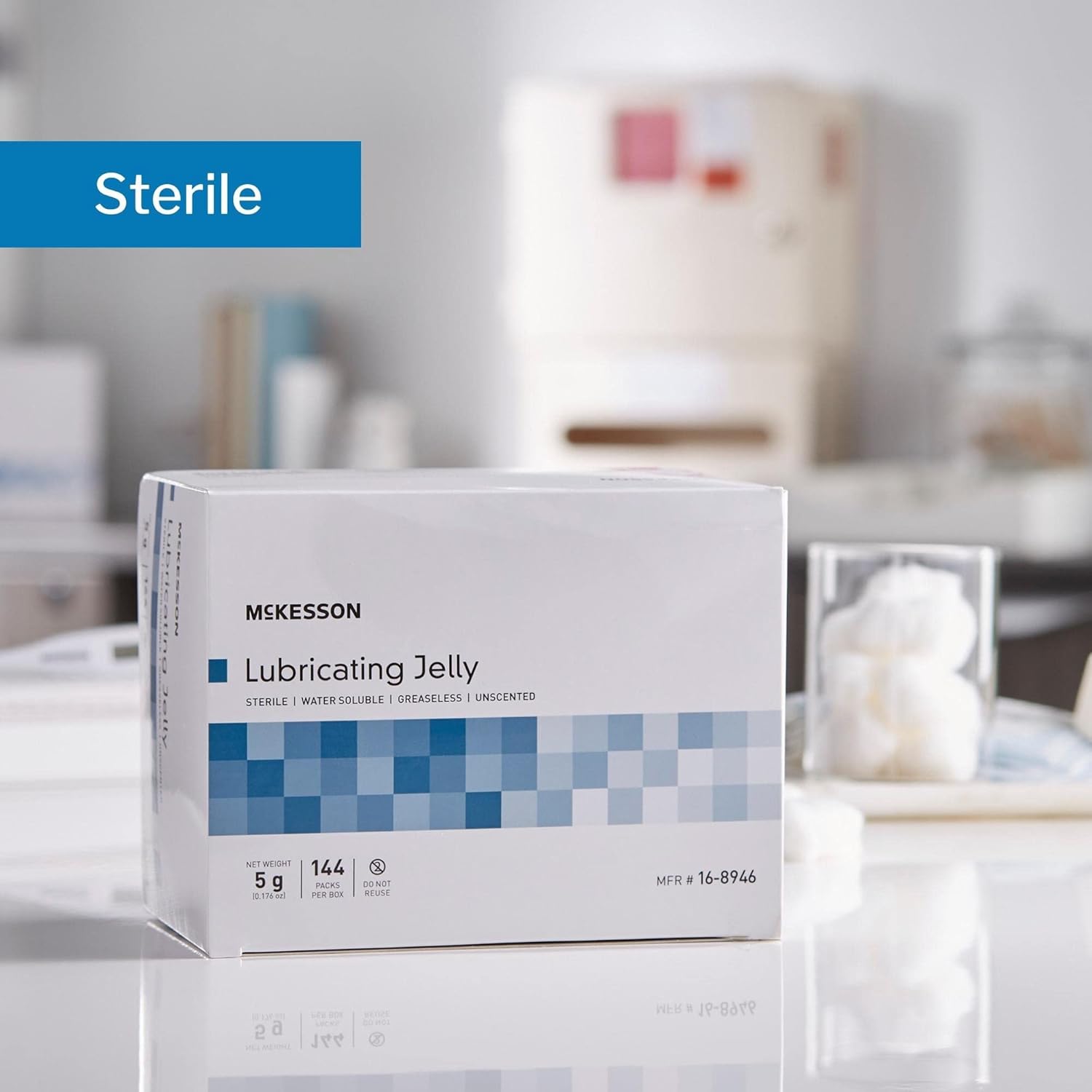 McKesson Lubricating Jelly, 5 g [144 Count] Water Based Non-Sticky Lube, Water Soluble Lubricant Gel - for Surgical, Medical, Personal – Sterile Individual Packets