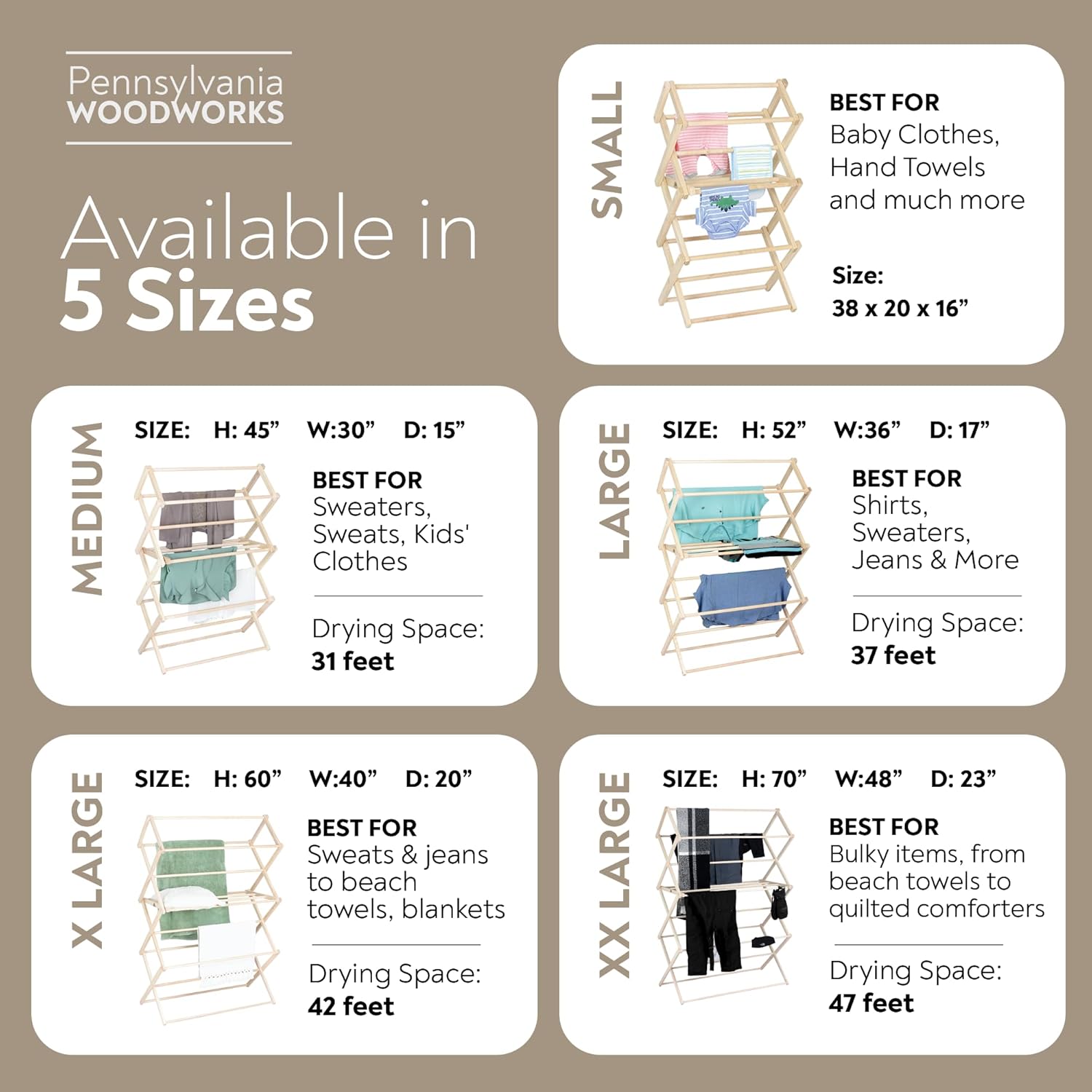 Pennsylvania Woodworks Clothes Drying Rack: Solid Maple Hardwood Laundry Rack for Bedding, Blankets, Towels & More, Heavy Duty, Folding Drying Rack Made in USA, No Assembly Needed, Extra Large