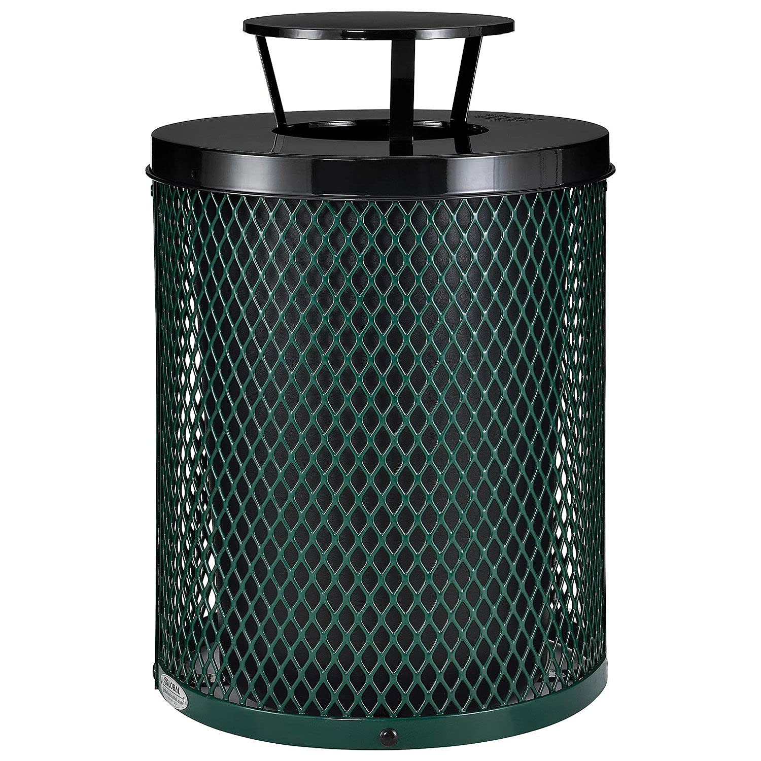 Global Industrial Outdoor Diamond Steel Trash Can with Rain Bonnet Lid and Plastic Liner, 36 Gallon Capacity, Green, Thermoplastic Coating, 23-1/2" Diameter, 40-1/2"H