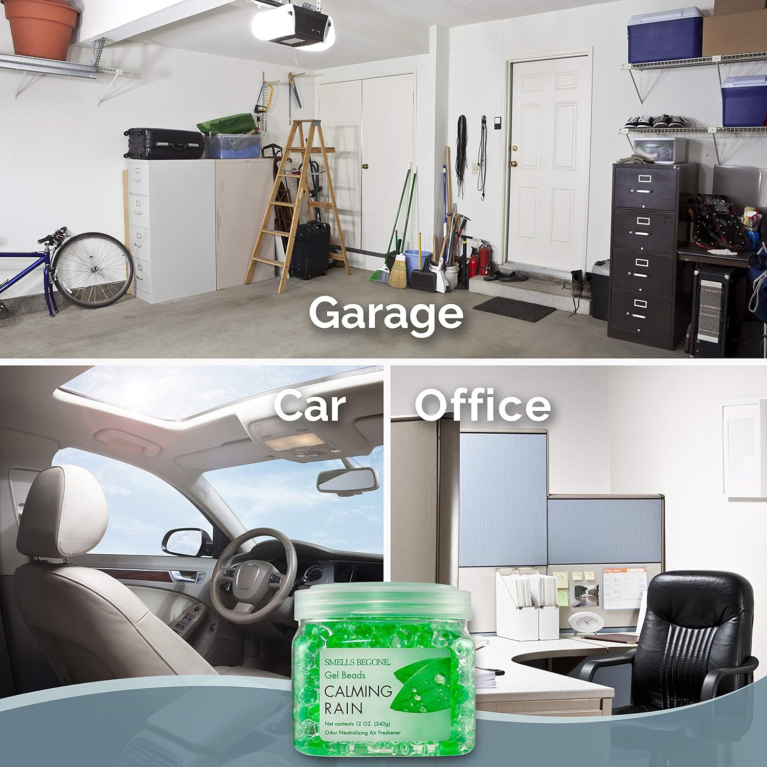 SMELLS BEGONE Odor Eliminator Gel Beads - 12 oz, Pack of 6 - Eliminates Odor in Bathrooms, Cars, Boats, RVs & Pet Areas - Air Freshener - Made with Essential Oils - Calming Rain Scent