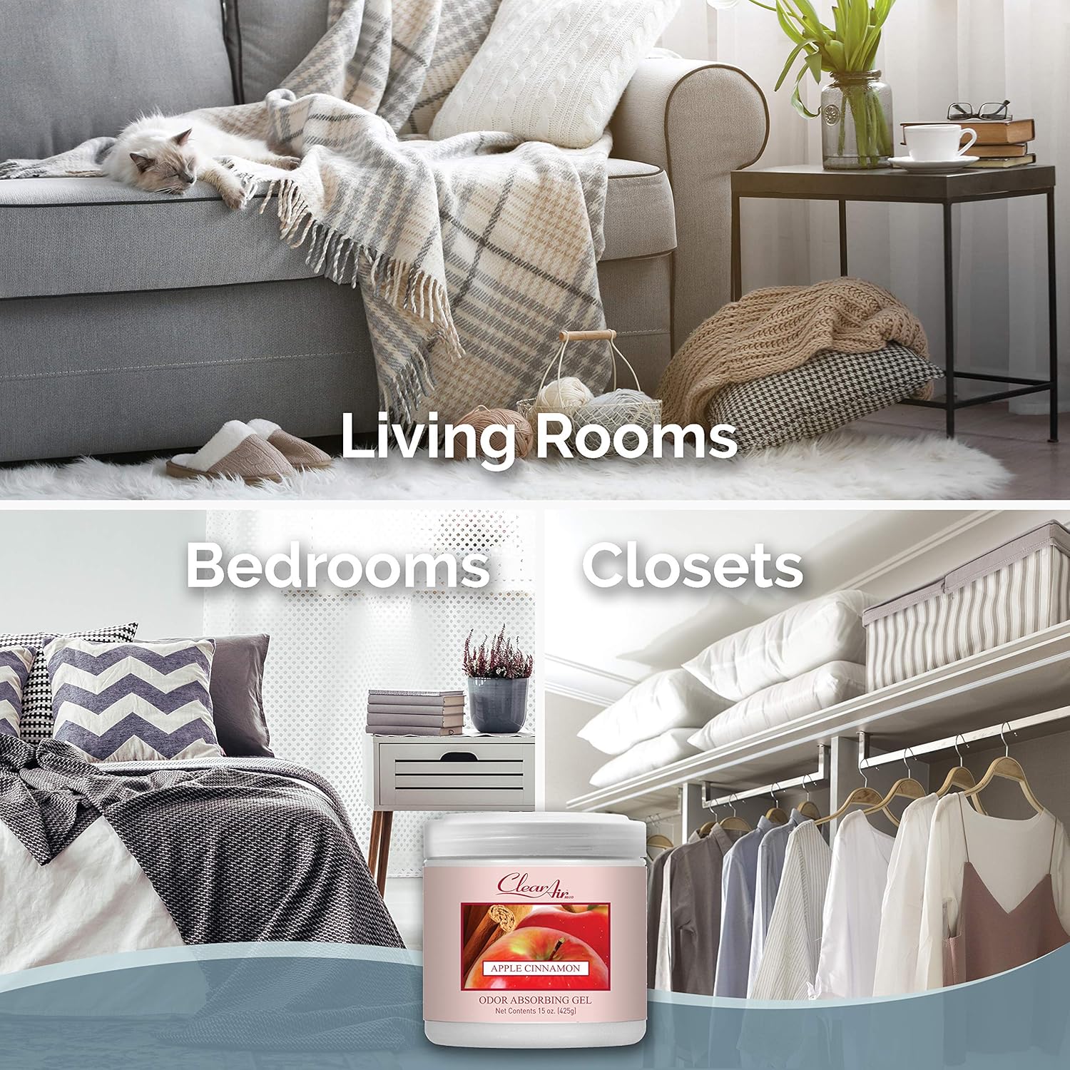 Clear Air Odor Absorber Gel - 15 oz, Pack of 2 - Air Freshener Absorbs and Eliminates Odors in Bathrooms, Cars, Boats, RVs and Pet Areas - Made with Essential Oils - Apple Cinnamon Scent