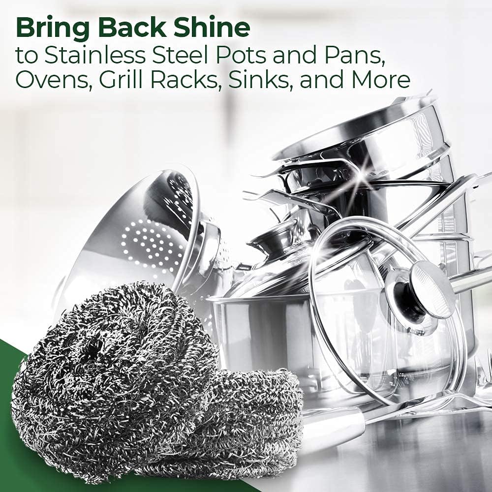 - TOUGH ON DIRT: Easily scrub away grease, grimy build-up and baked on foods from stainless steel pots and pans, ovens, grill racks and sinks. These scrubbers effortlessly tackle your toughest jobs, effectively cleaning cookware without ruining the finish.