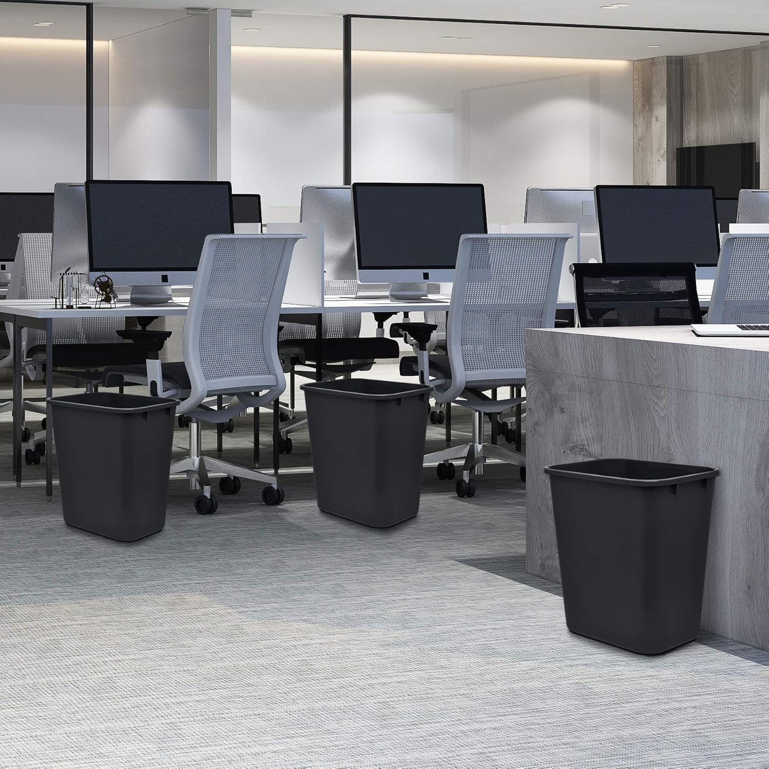 Acrimet Wastebasket, Deskside Bin, 6.75 Gallon/ 27 Quart/ 24 Liter (Plastic) (Black Color) (Set of 4)