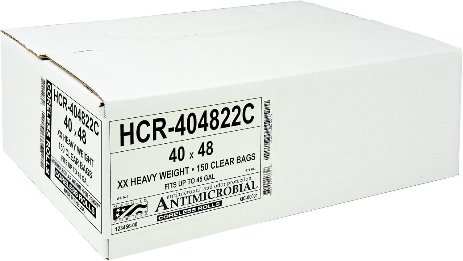 Aluf Plastics High Density Trash Bags, 45 Gallon, 150 Count, 22 Micron (eq), 40" x 48", Clear, for Bathroom, Office, Industrial, Commercial, Janitorial, Municipal, Recycling