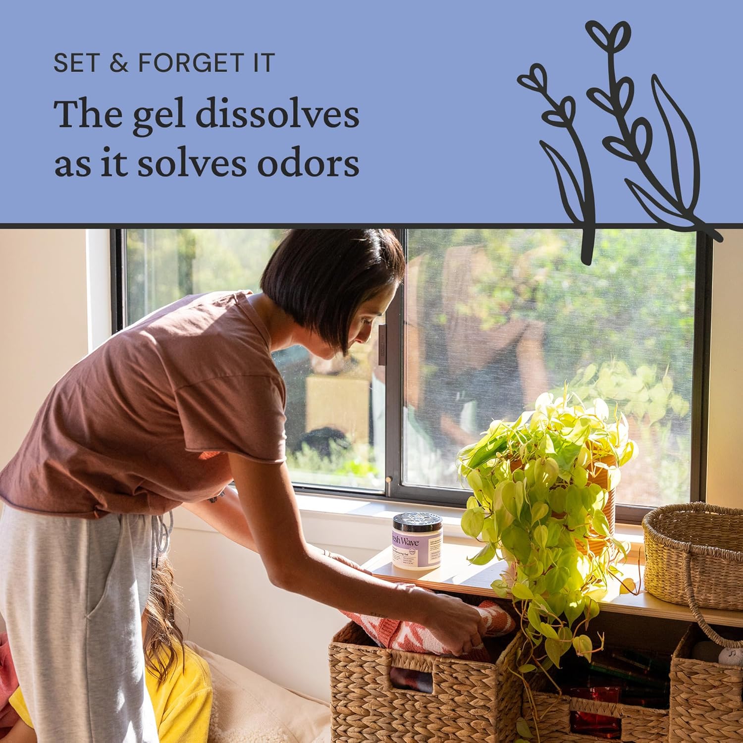 - LAVENDER ODOR ELIMINATOR FOR HOME: Fresh Wave Gel is an odor absorber and neutralizer for your kitchen, bathroom, garages, pet areas, car, or any other room. The lavender oil helps eliminate odors from cooking, trash, paint, common home odors, and more.