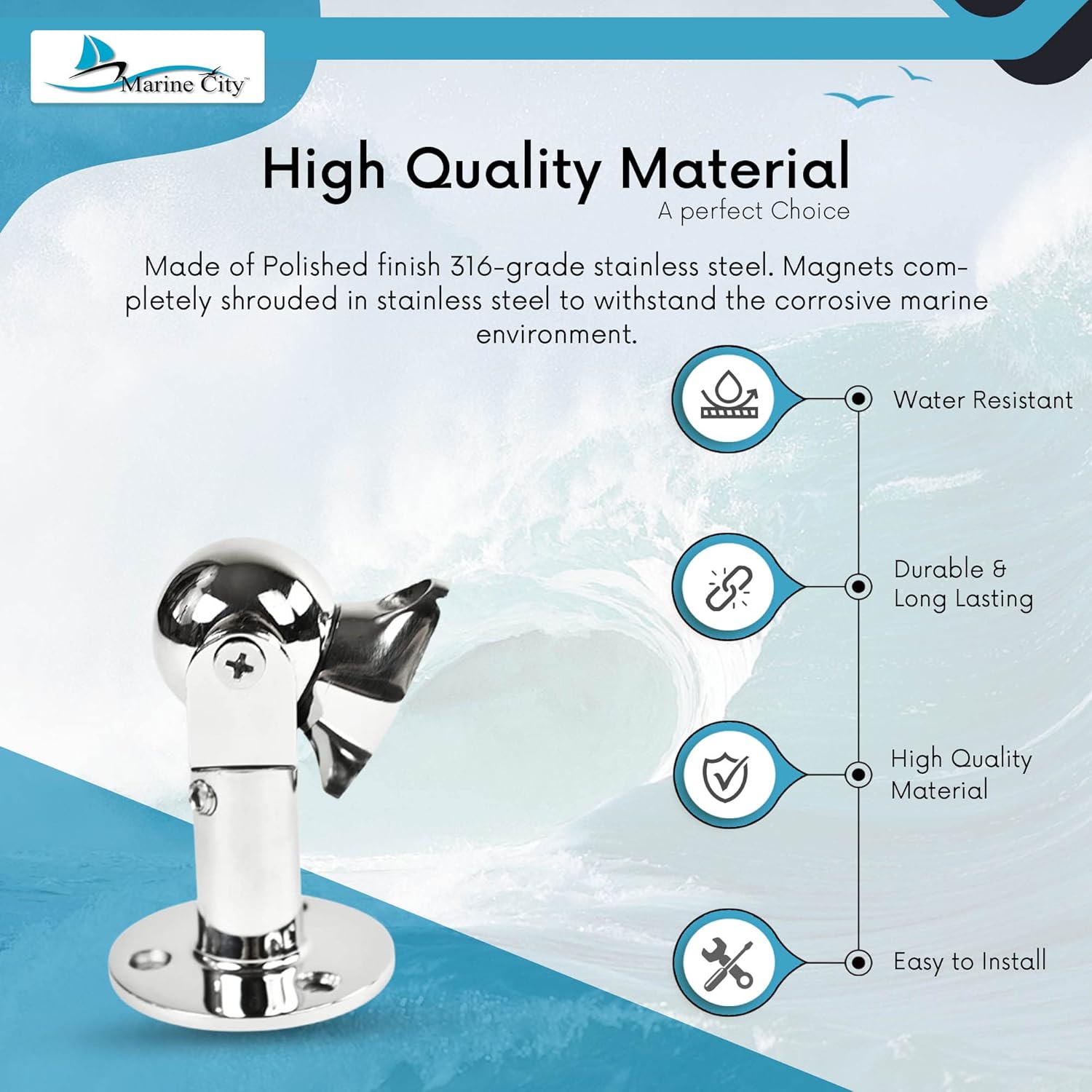 MARINE CITY Magnetic Ball Door Window Stopper Set, 316 Stainless Steel, Corrosion-Resistant, Holds 4kg, Water-Resistant, Extendable 73mm-100mm, Ideal for Boats, Yachts, Ships