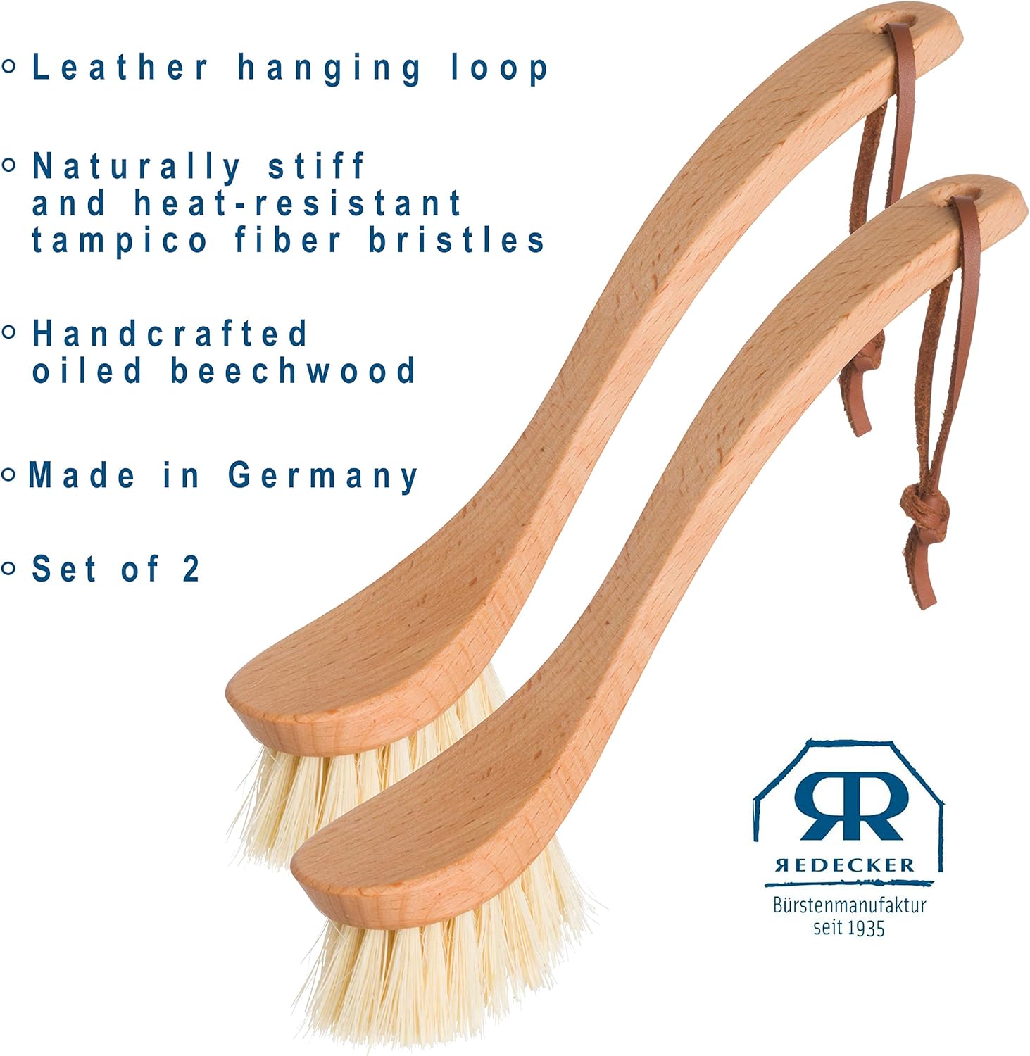 - Easy Maintenance: To maintain, use lukewarm water and a mild shampoo, and allow to air dry completely at room temperature. Our tampico kitchen brush measures 9-1/4 inches; set of 2 units, made in Germany. This natural dish brush set is ideal for cleaning tasks