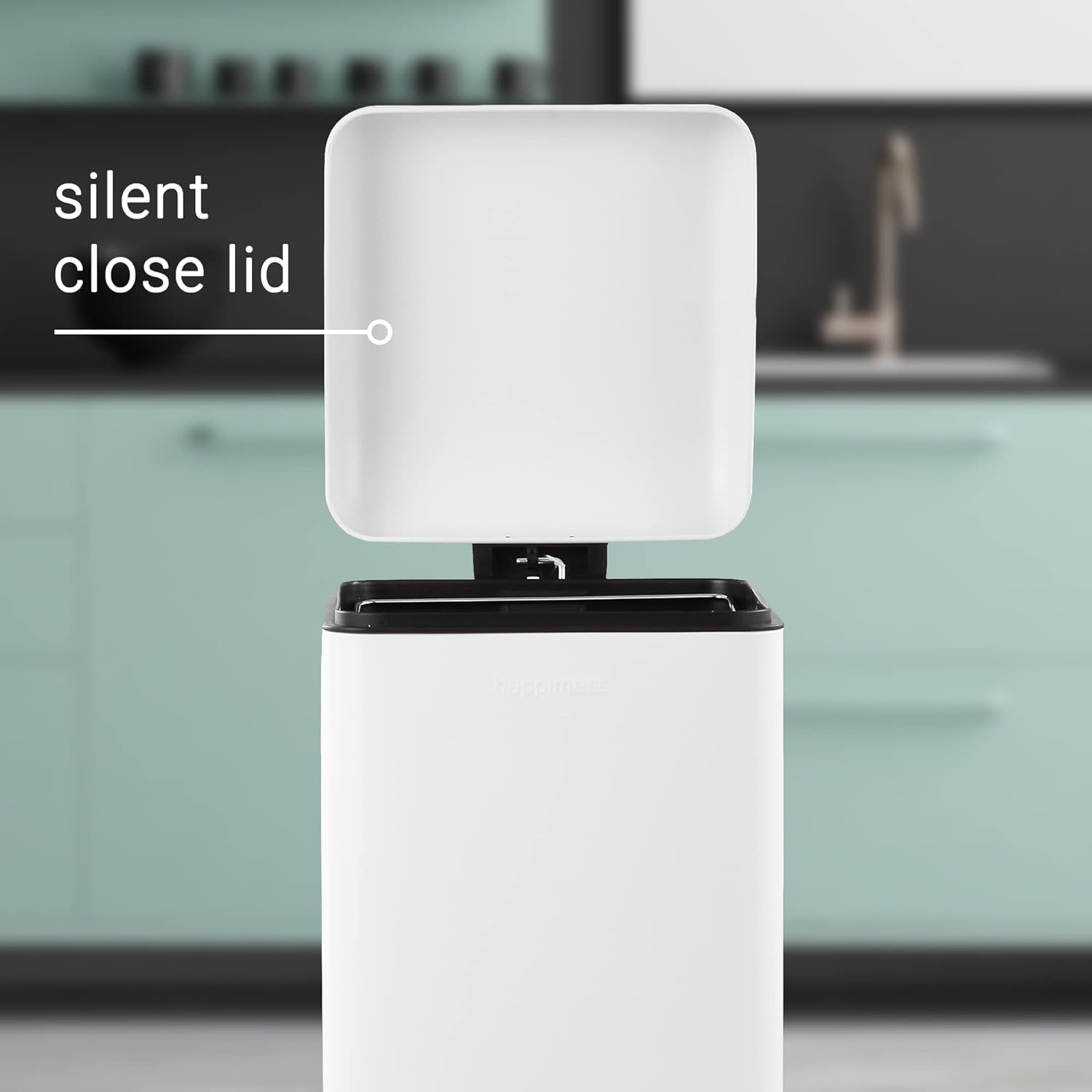 - STYLISH & PRACTICAL DESIGN: happimess Trash Cans clean-lined designs blend beautifully into your existing decor; Dispose of trash hands-free with our convenient step pedal; built-in damper lowers the lid quietly, and closes it tightly to keep odors inside