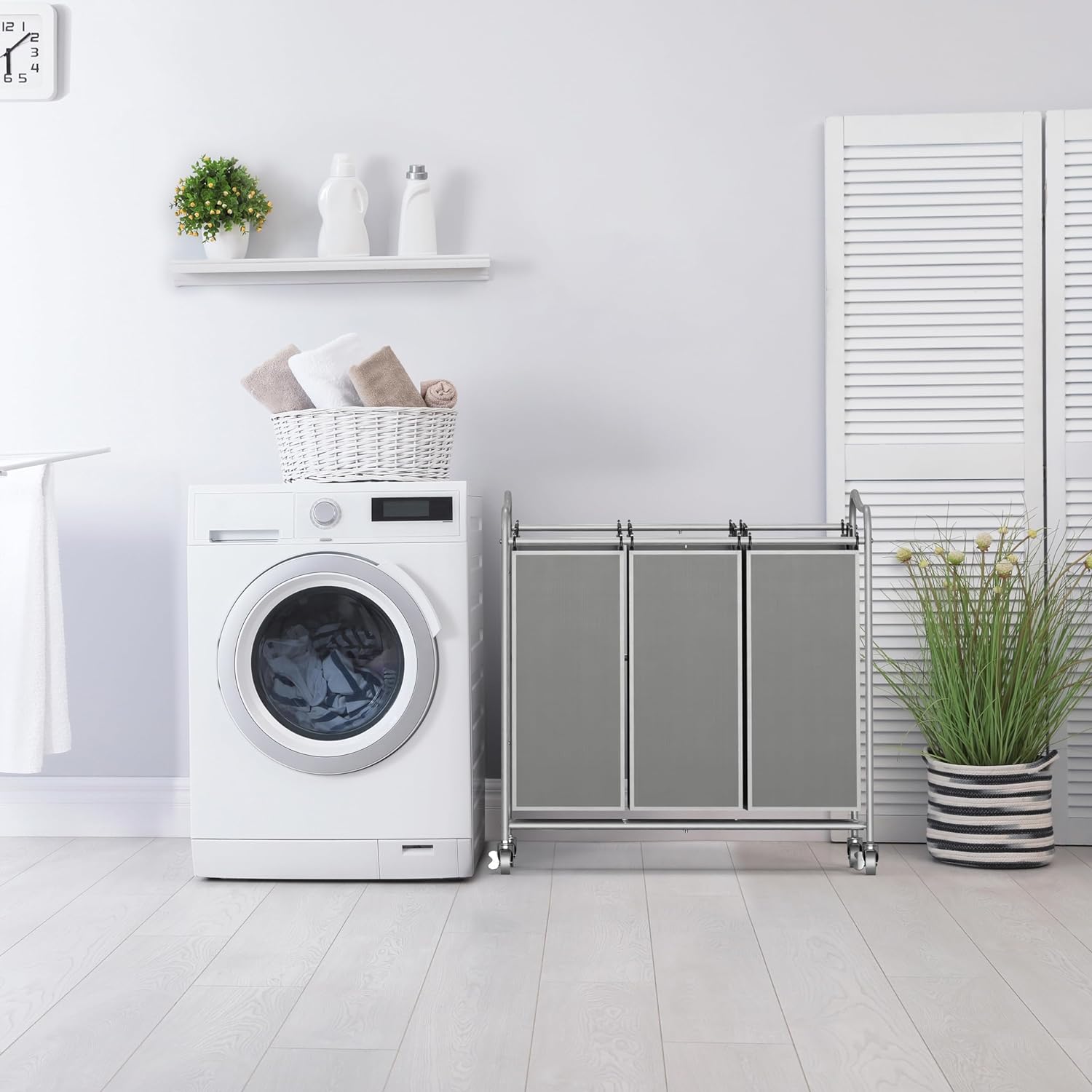 Simple Houseware Heavy-Duty 3-Bag Laundry Sorter Cart, Silver