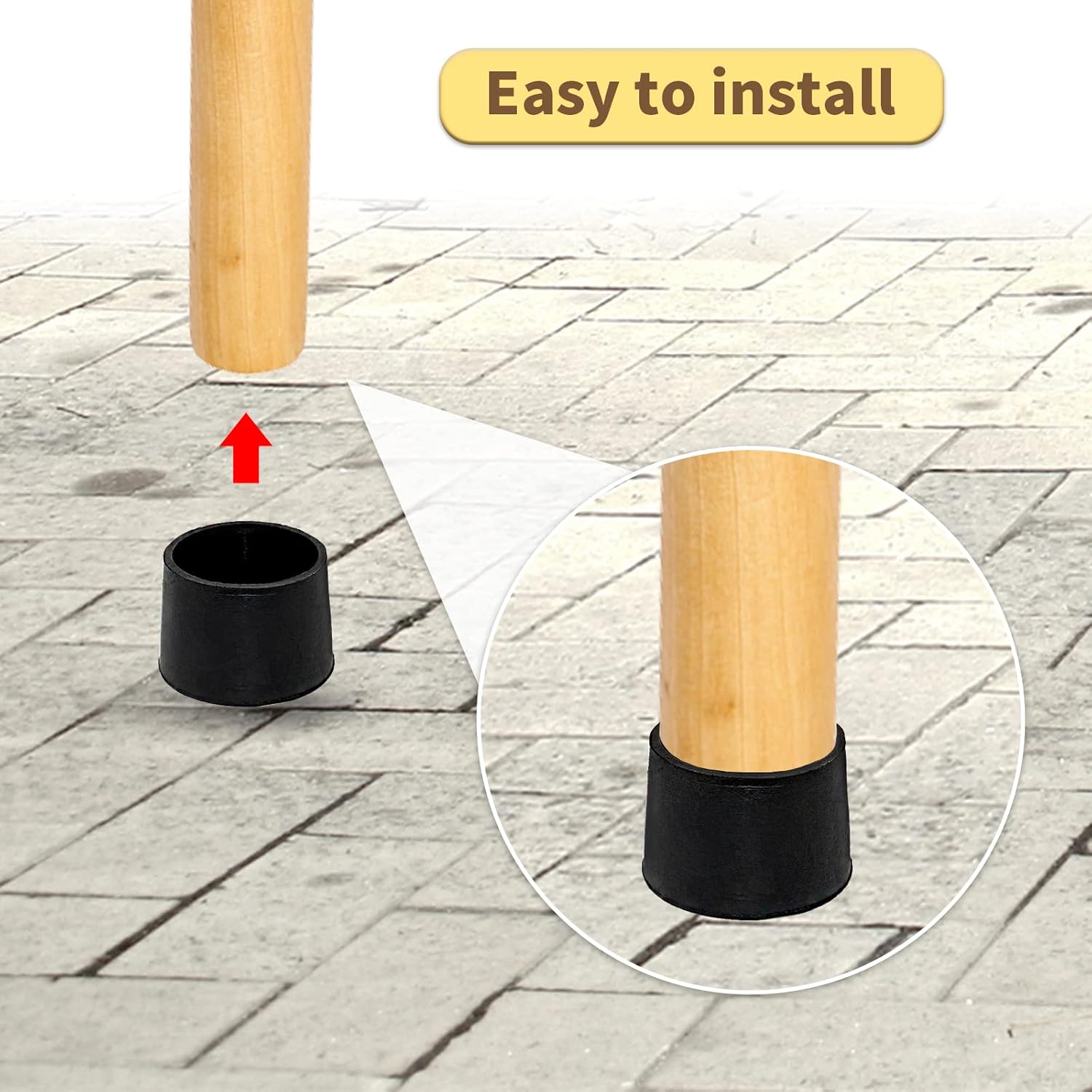 Flyshop 4 Pieces 40mm Rubber Chair Leg Caps Round, Non-Slip Protective Caps for Chair Legs, Floor Protectors, Noise Reduction, Durable Foot Covers, Black Furniture Feet Gliders