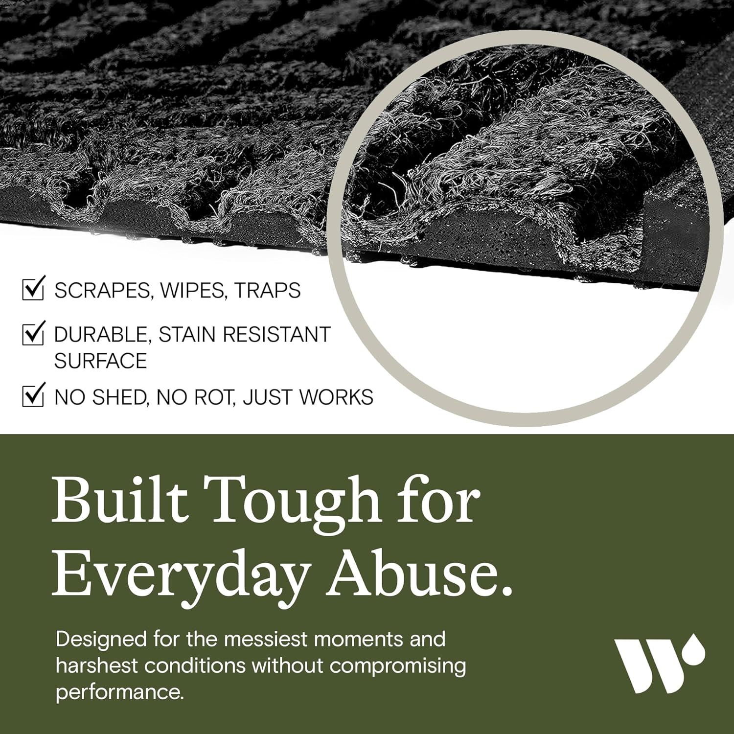 - DURABLE, ECOLOGICAL CONSTRUCTION: Made in the USA, our WaterHog entrance mat is crafted with up to 90% recycled PET fiber and 20% recycled rubber backing, ensuring durability and long-lasting performance in high-traffic areas, both indoors and outdoors.