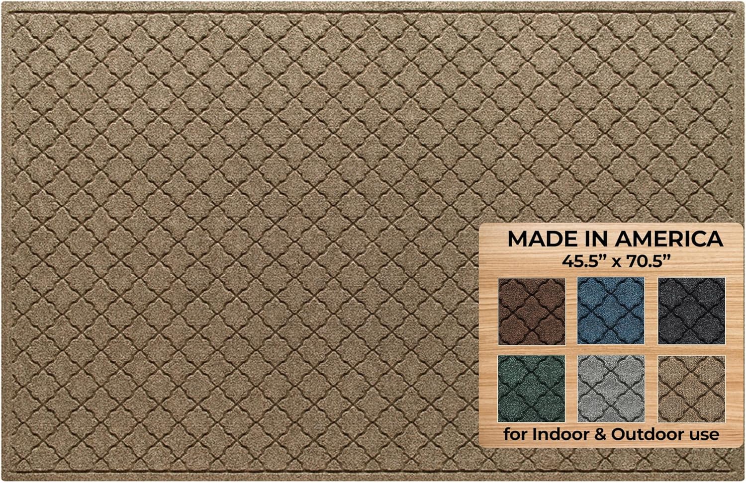 - VERSATILE SIZING FOR EVERY NEED: The 45.5" x 70.5' size, 45-1/2" wide by 70.5" long, with a low 3/8" pile height fits a wide range of doorways, making this WaterHog heavy-duty doormat an ideal choice for entryways, mudrooms, offices, or any high-traffic areas where moisture and dirt management are needed. Size may have a 3-5% variance due to the manufacturing process.