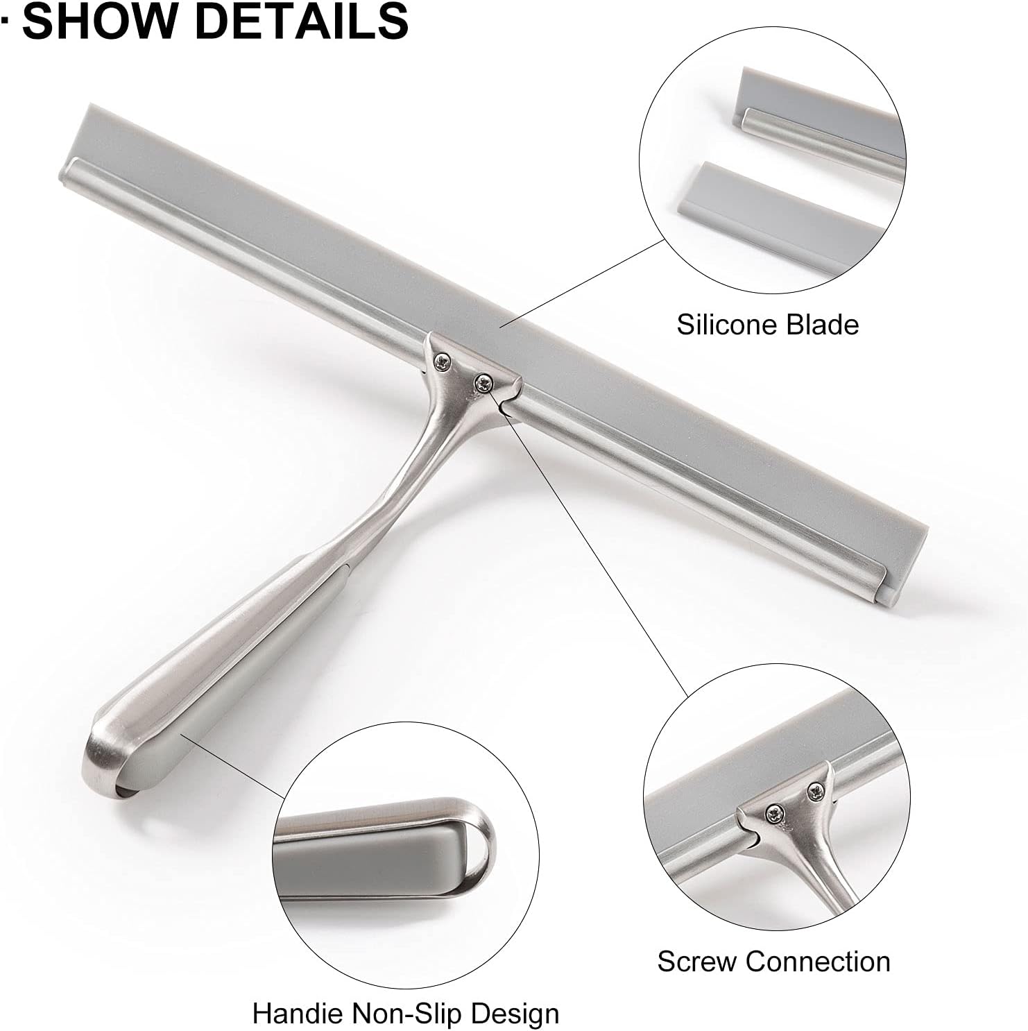 Shower Squeegee for Shower Doors 10 Inch Bathroom Squeegee for Windows,Kitchen,Mirror and Car Glass, Stainless Steel