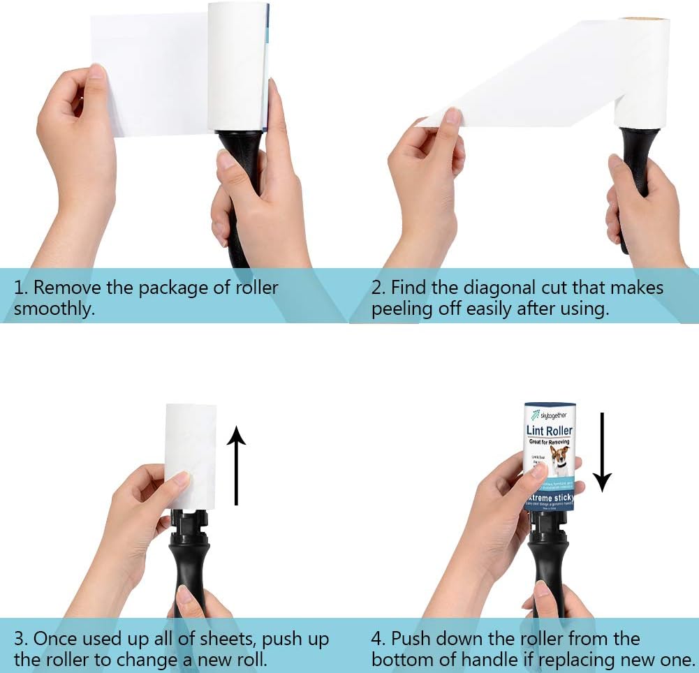 - 【Diagonal Tear Sheets】: Featuring a diagonal tear design, our lint roller sheets are easy to remove. Simply tear away the used sheets to reveal a fresh adhesive layer