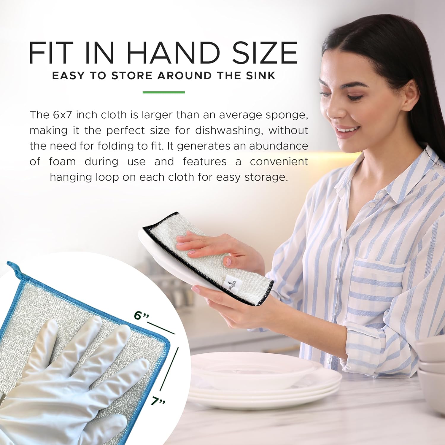 - DESIGNED FOR DISHES β 6x7 inch bamboo-rayon dishcloths hold plenty of soap and water, yet wring out easily with one hand. Highly absorbent to reduce drips and splashes.