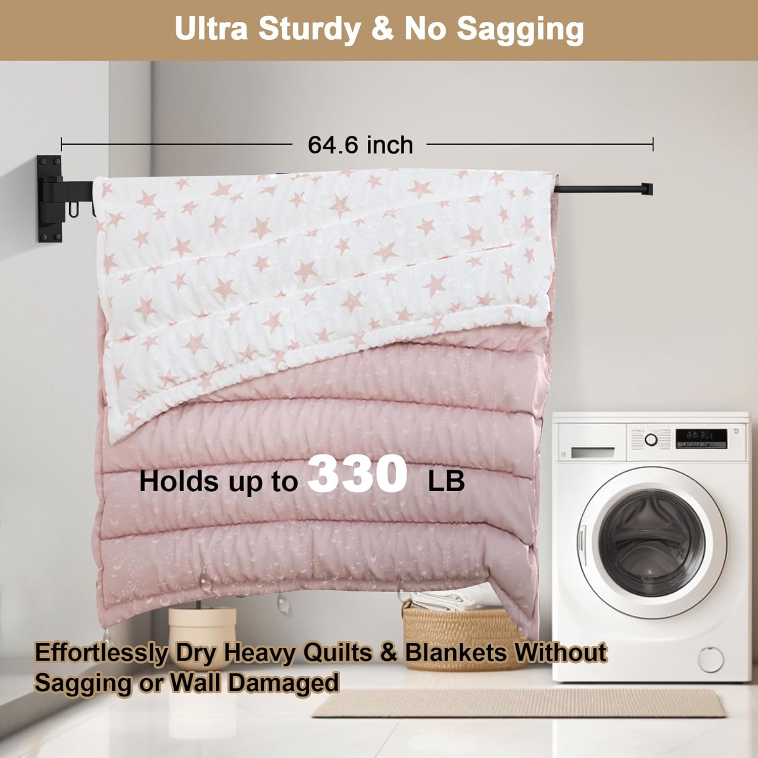 - 【Versatile Use】This laundry hanger dryer rack wall mount isn't just for clothes and towels, it also support heavy quilts and sheets thanks to it high loading capacity. Perfect for indoor or outdoor use, including laundry rooms, patios, and balconies, offering flexibility for various spaces. Plus, save on gas bills by air drying clothes.