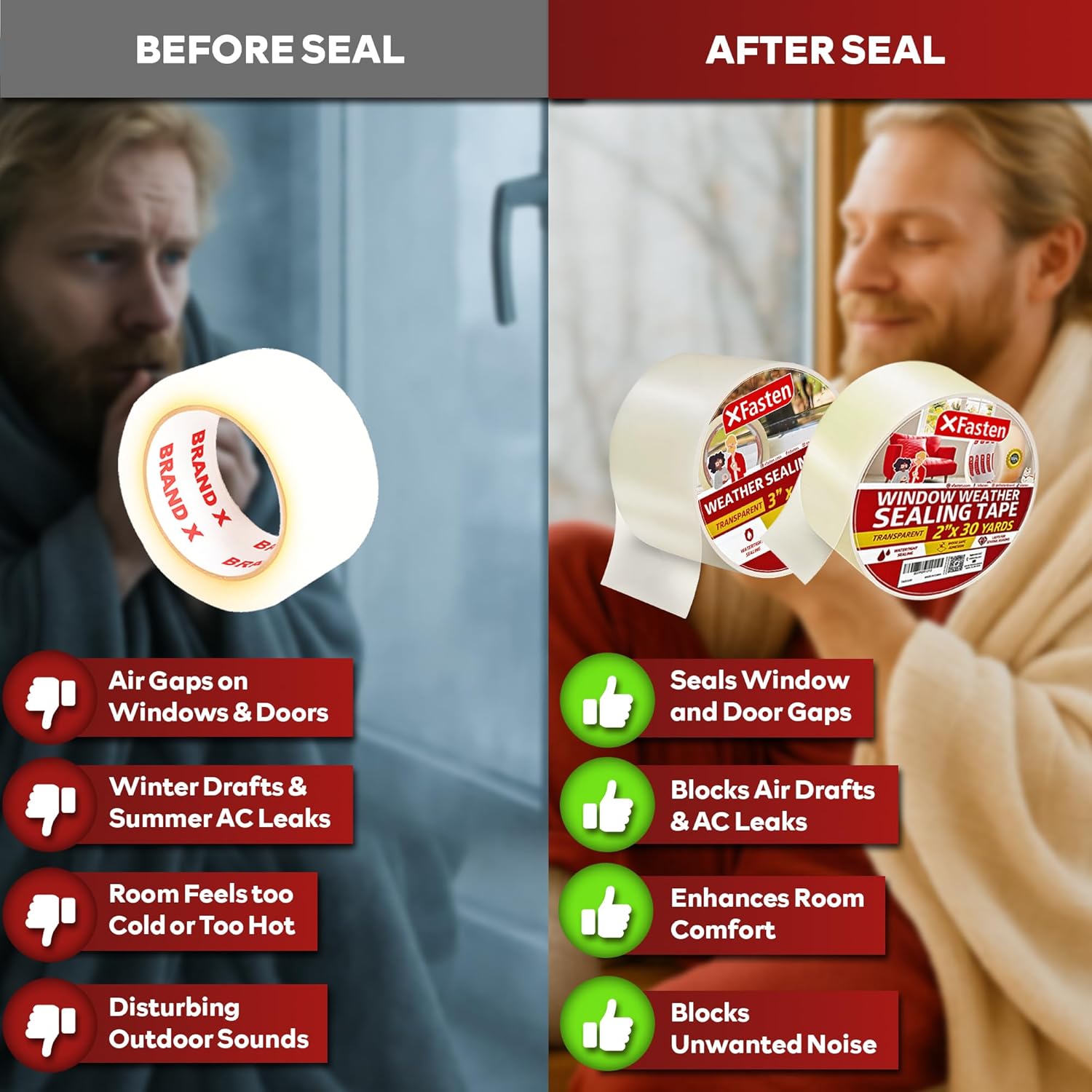 - WOOD-SAFE AND RESIDUE-FREE. This insulation tape for windows and doors removes cleanly and leaves your windows or any material free from residue. Enjoy a draft-free environment with the convenience and ease of use of the XFasten Window Weather Seal Tape.