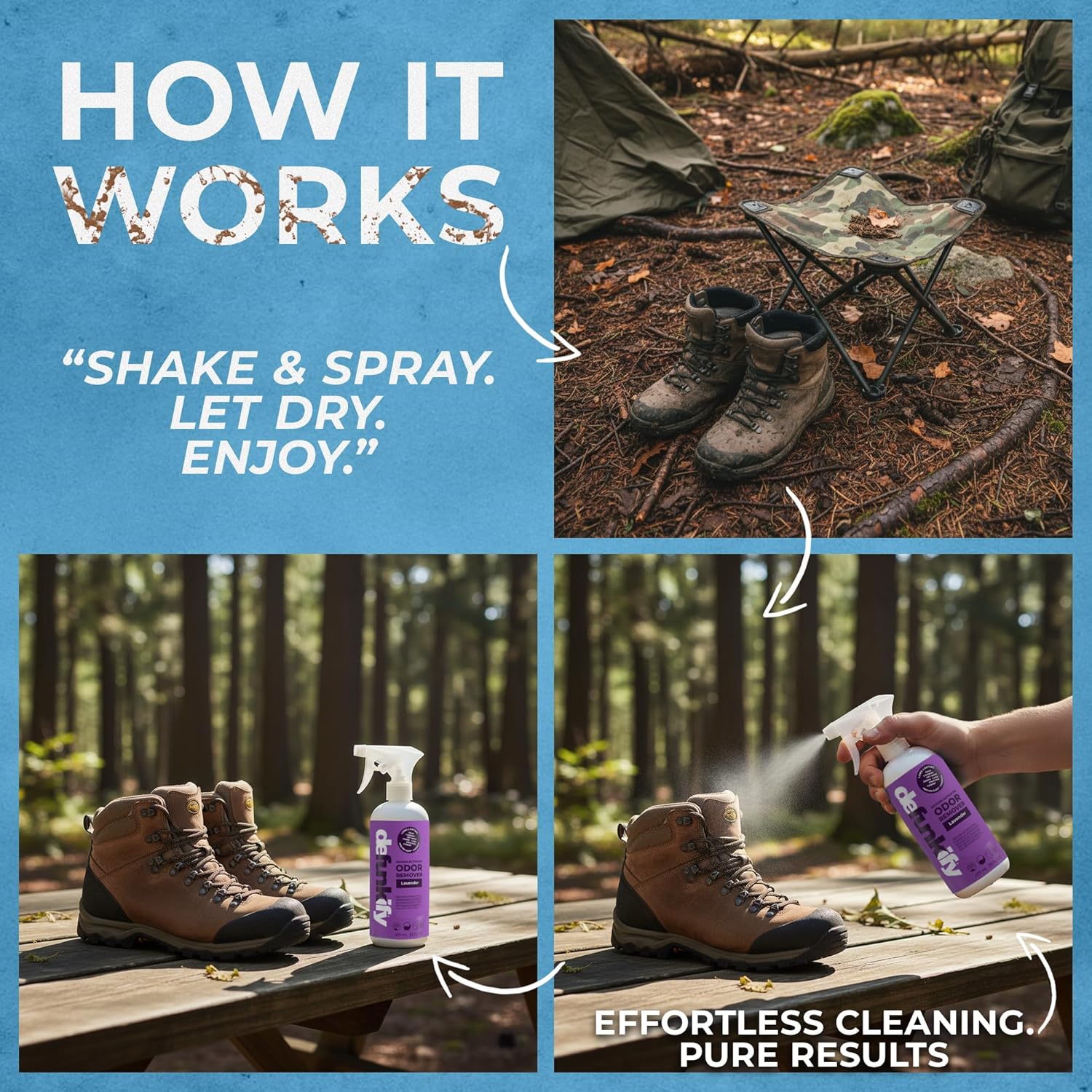 - 𝗦𝗽𝗿𝗮𝘆 𝘁𝗵𝗲 𝗙𝘂𝗻𝗸 𝗢𝘂𝘁!' 𝗚𝘂𝗮𝗿𝗮𝗻𝘁𝗲𝗲: For everything you can't wash, Defunkify's Odor Remover Fabric Spray deeply deodorizes & freshens. Sweat, pet funk & more don't stand a chance. As a lightly scented 'Lavender' essential oil odor eliminator/refresher w/ all natural ingredients & ionic silver, your shoes, non washable fabrics & carpets 𝘄𝗶𝗹𝗹 𝗯𝗲 𝘀𝗺𝗲𝗹𝗹𝗶𝗻𝗴 𝗹𝗶𝗸𝗲 𝗻𝗲𝘄 𝗶𝗻 𝗮 𝘀𝗶𝗻𝗴𝗹𝗲 𝗮𝗽𝗽𝗹𝗶𝗰𝗮𝘁𝗶𝗼𝗻, 𝗴𝘂𝗮𝗿𝗮𝗻𝘁𝗲𝗲𝗱. Learn more at Defunkify.