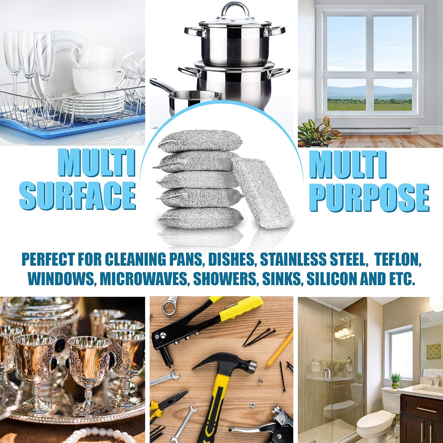 - DURABLE LONG LASTING MATERIALS: Unlike metal scrub sponges that rust easily, these polyester and polyurethane cleaner sponges will stain in excellent condition for up to 3 months (500 uses). Each set includes 6 scrubber pads in silver and gold, so you won’t have to buy a new pack anytime soon!