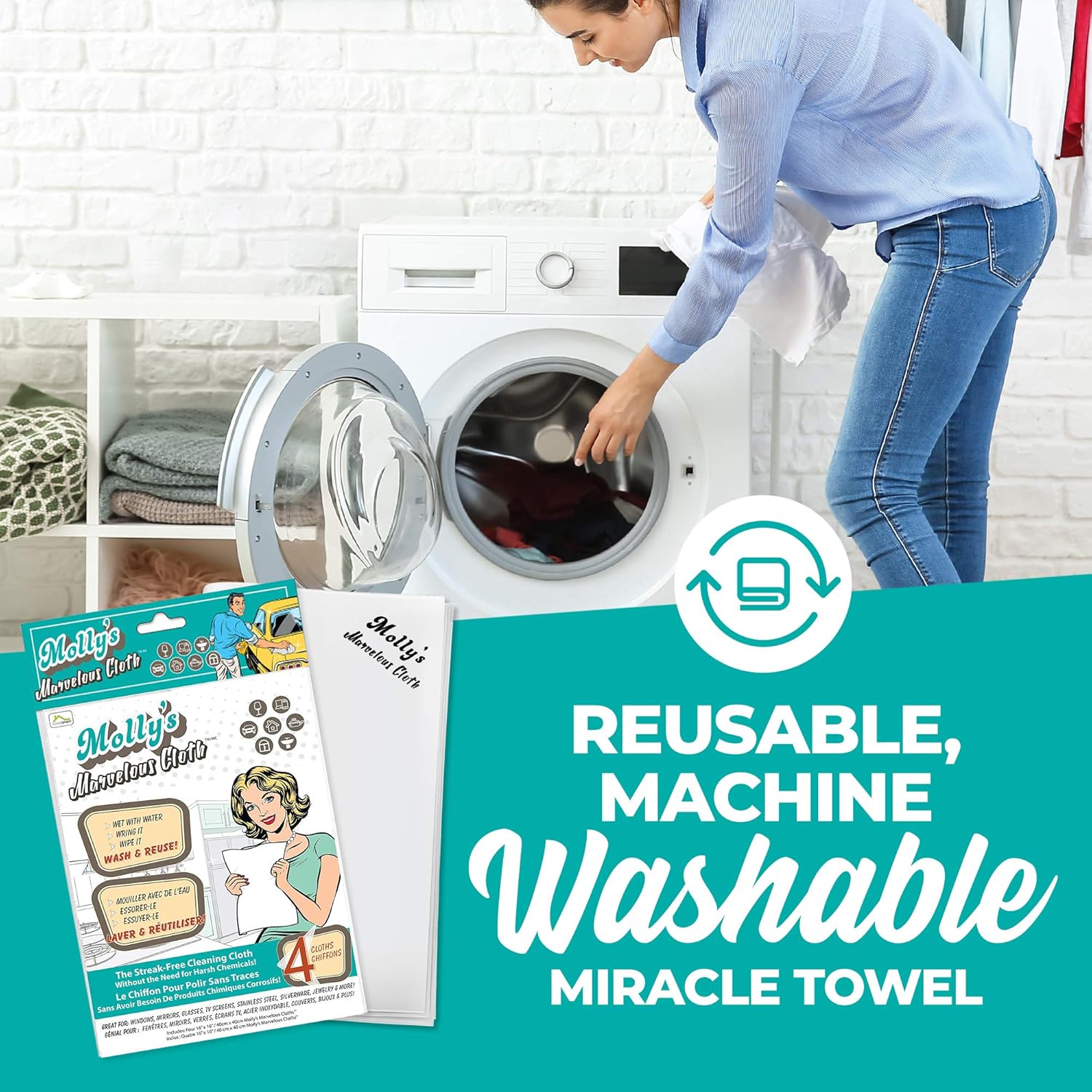 Molly's Marvelous Cloth, Streak-Free, Lint-Free Microfiber Cleaning Cloth, Polishing Cloth for Glass, Stainless Steel, Use for Kitchen, Bath, Cars, Detailing, Reusable (17" by 16") (4pk, White)