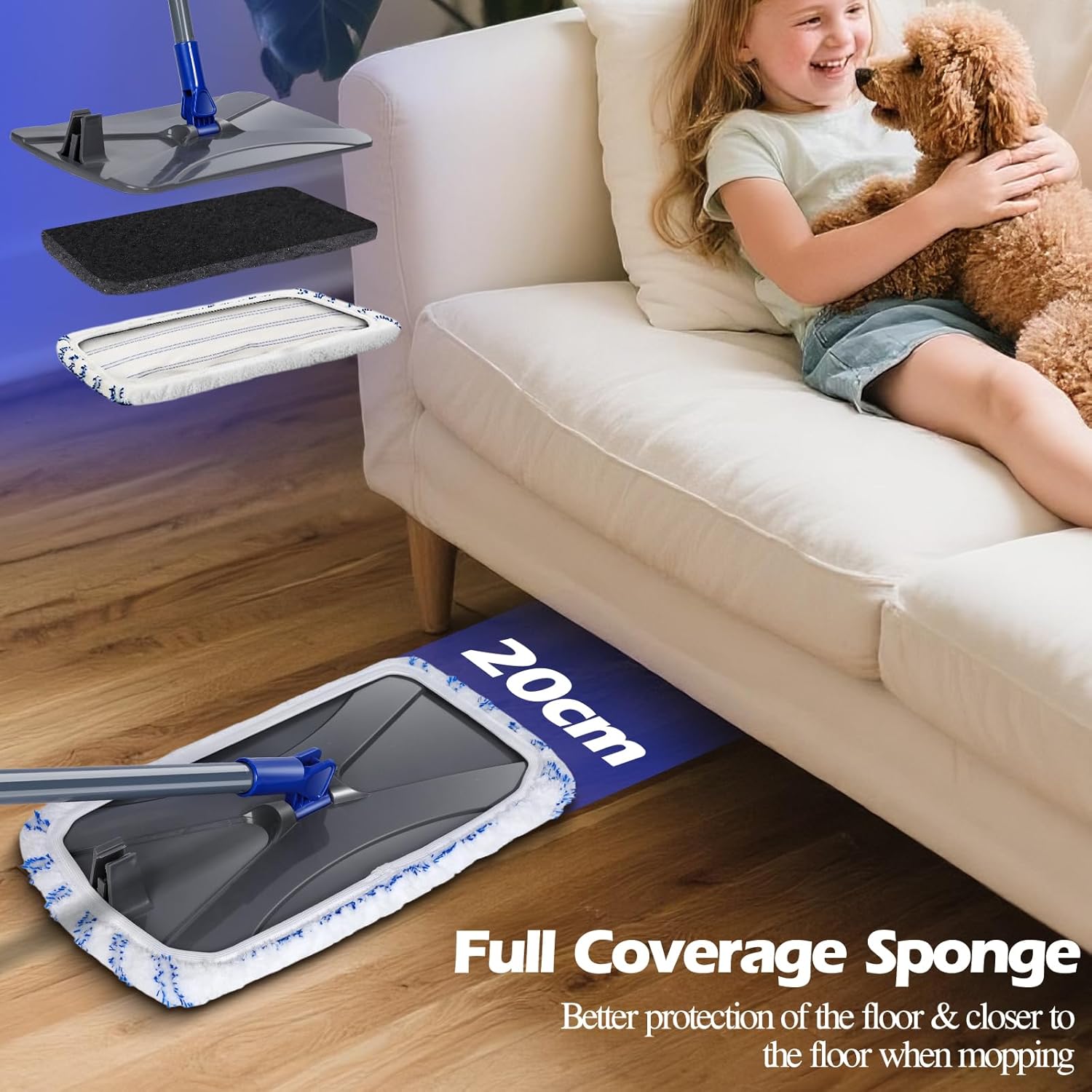 - 360Β° Rotation:The dust mop head can rotate 360Β° to reach any gaps and deep corners under furniture with ease. An extra scraper can help you clean dirt stuck on the microfibre mop pad.Search ASIN B07YCF3ZWN for replacement pads.