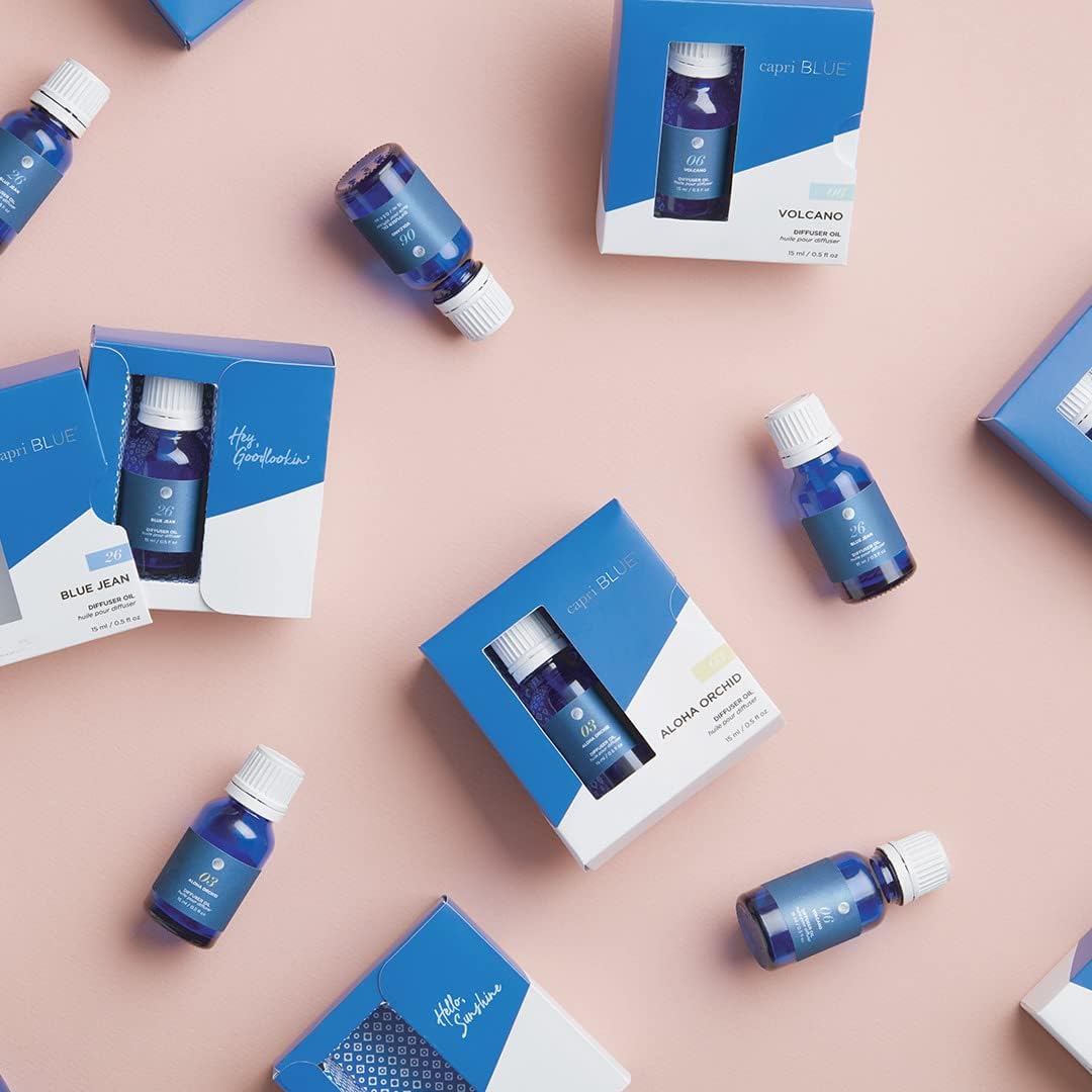 - About Us - Inspired by contemporary fashion trends, Capri Blue creates exciting new products for every season. Also available in our Aloha Orchid and Blue Jean Scent. Elevate your scent experience with our luxury diffuser oil.