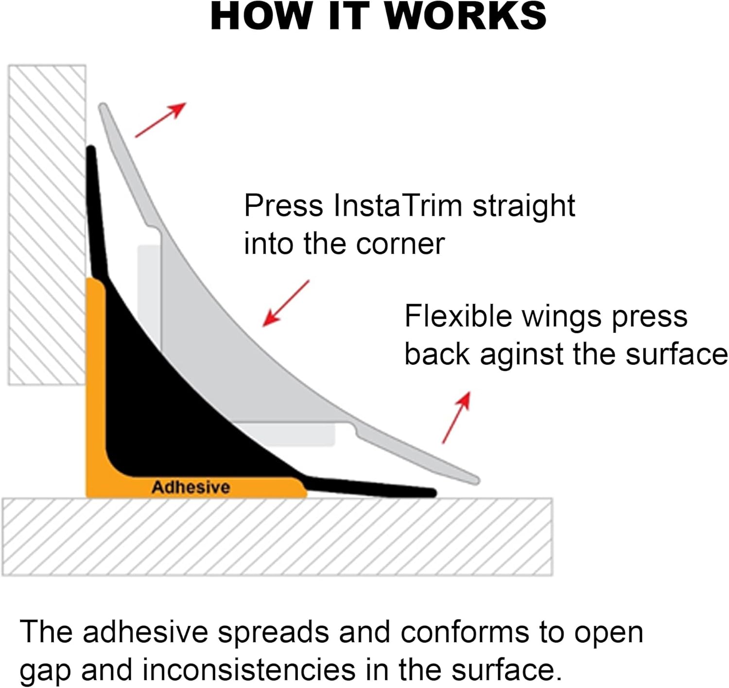 - Flexible, Durable Seal for Any Surface: InstaTrim’s caulk trim is flexible enough to conform to any edge or surface, providing a smooth, professional look around sinks, tubs, countertops, and more. Ideal for filling gaps and edges without the hassle of messy caulking tools.