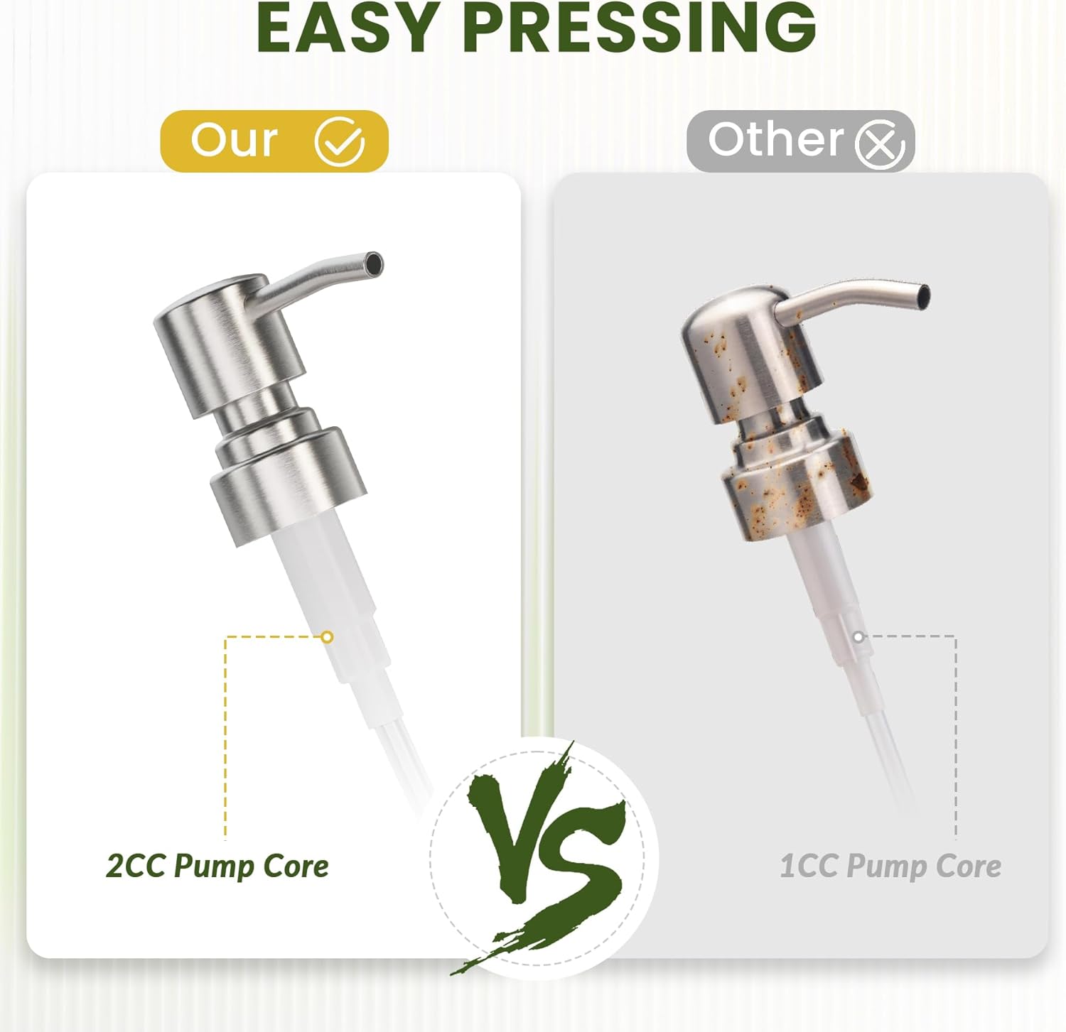 - Glass soap dispenser with pump: Amazerbath hand soap dispenser with improved stainless steel pump effectively avoid corrosion and rust, deliver liquid smoothly every press without dripping.