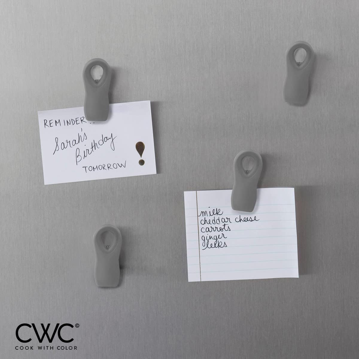 - Fun and colorful clips with a useful magnet in the back - keep these handy helpers readily available on your fridge for an easy reach and access. Can be used to hold light objects.