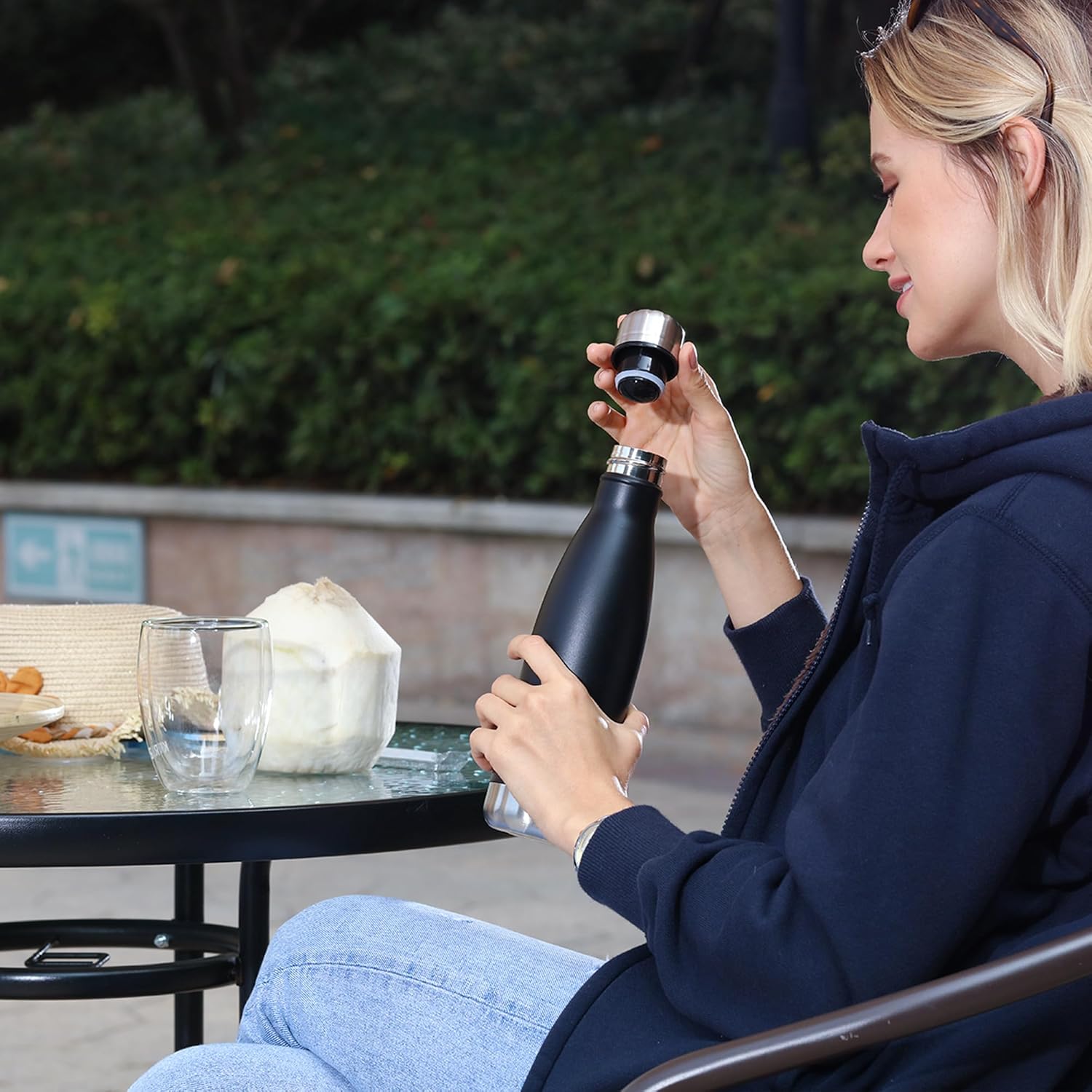- KEEPS COLD 24 HRS, HOT 12 HR:Do you like cold drinks? hot coffee? Our double vacuum insulated stainless steel bottles allow you to enjoy cold water, juice, milk, beer or whatever you like! On cold days, you can pour in your favorite hot drinks, such as coffee or tea!your cold drink will stay perfectly chilled up to 24 hours or your coffee, tea or hot drink will keep hot for up to 12 hours. Enjoy a good day