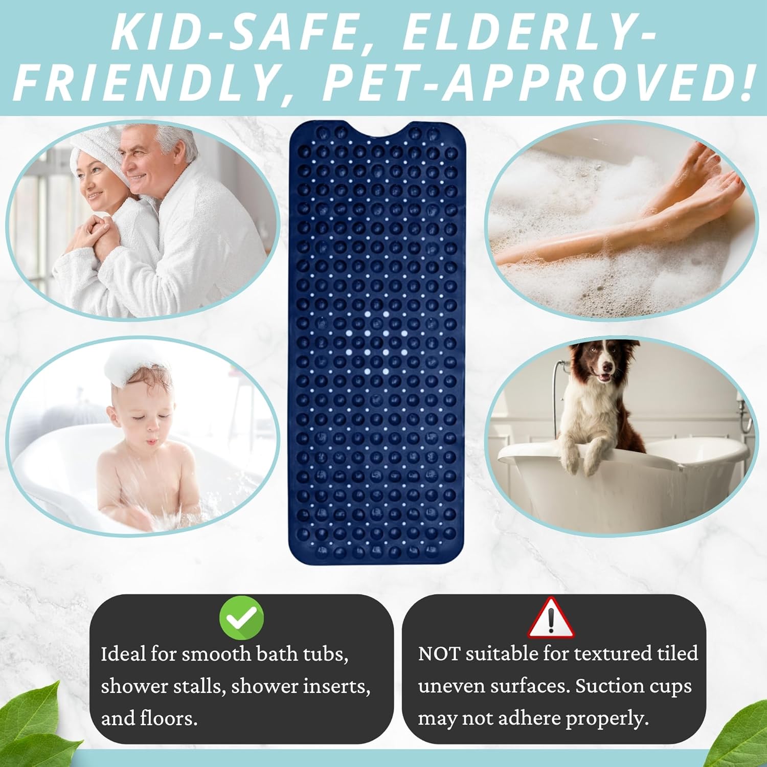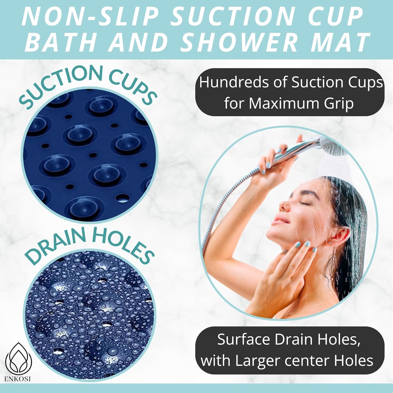 - Great For The Elderly, The Babies & Young Children: Nonslip & generously sized, the Enkosi bath mat ensures the safe bathing & showering of your baby, toddler, as well as your elderly parents or grandparents.
