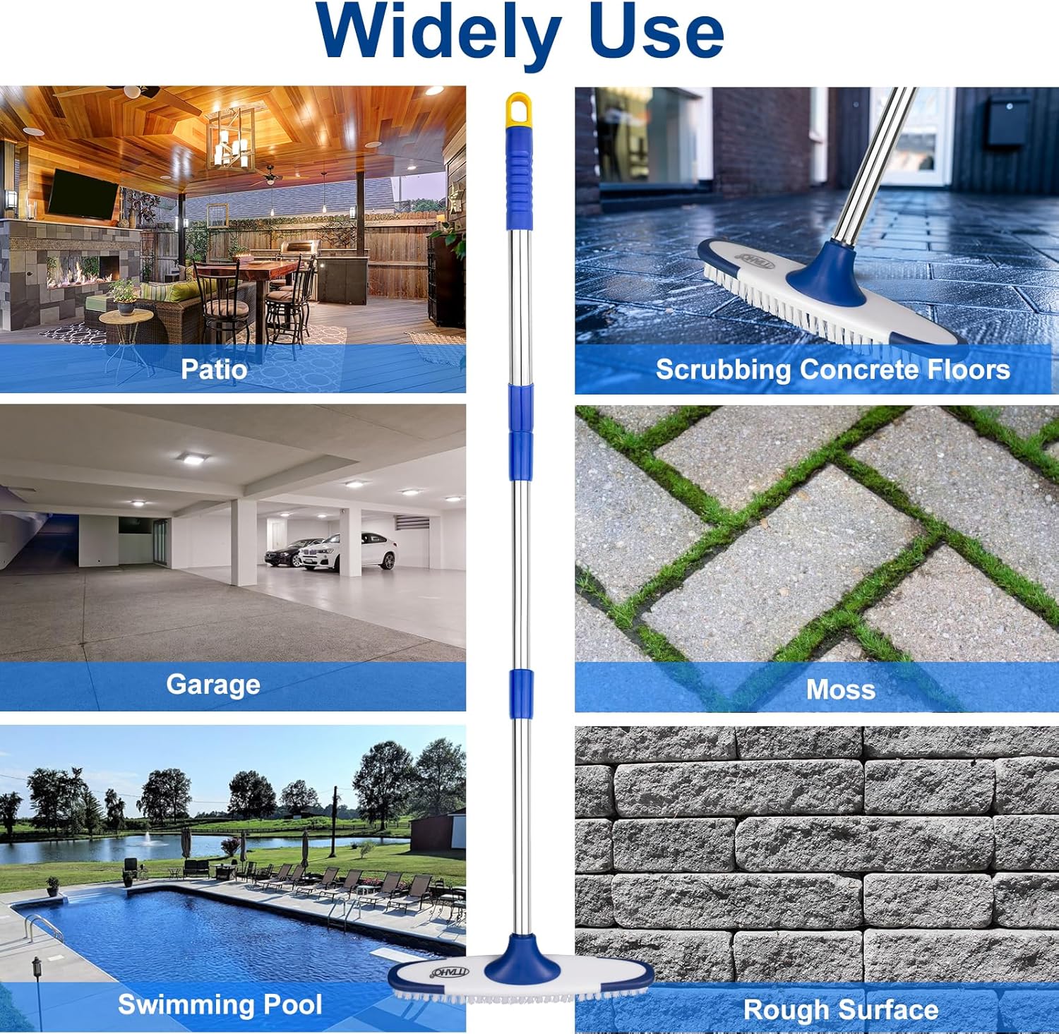 - All Purpose:ITTAHO long handled scrub brush for cleaning features stiff and durable bristles,effectively remove away dirt and stain.Works well for scrubbing granite tiles, bathroom, patio, kitchen, wall,deck,shower,cement floor,grout lines cleaning.An essential household scrub broom