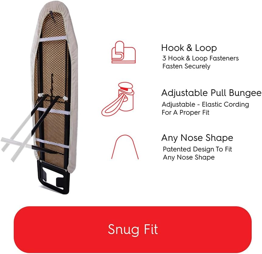 - Extra Thick Padding: cover is extra thick and provides a durable barrier between clothing and the ironing board, so that the mesh from the board will not transfer to your clothing