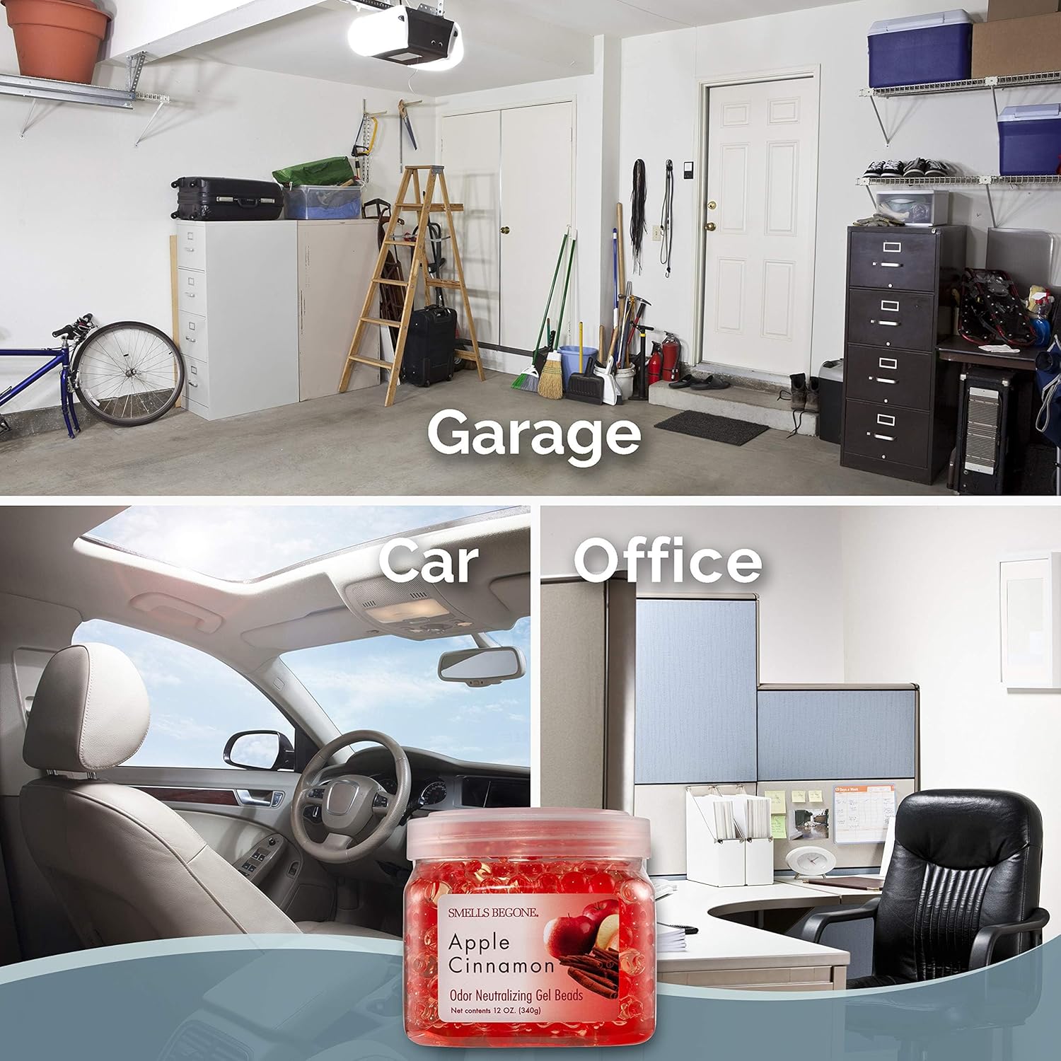 SMELLS BEGONE Odor Eliminator Gel Beads - 12 oz, Pack of 2 - Eliminates Odor in Bathrooms, Cars, Boats, RVs & Pet Areas - Air Freshener - Made with Essential Oils - Apple Cinnamon Scent