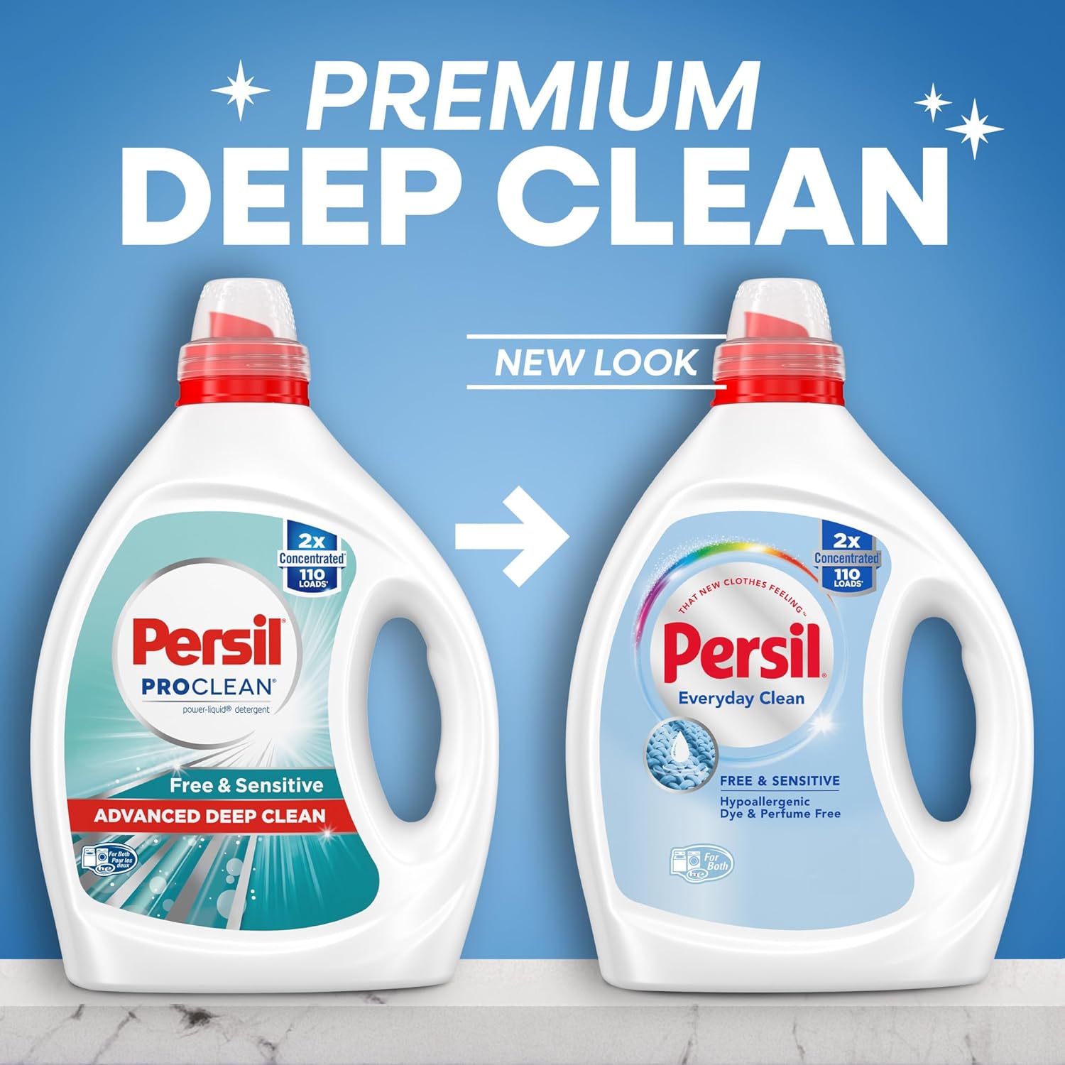 Persil Free & Sensitive Liquid Laundry Detergent, Unscented and Hypoallergenic for Sensitive Skin, Ultra Concentrated, 82.5 fl oz, 110 Loads