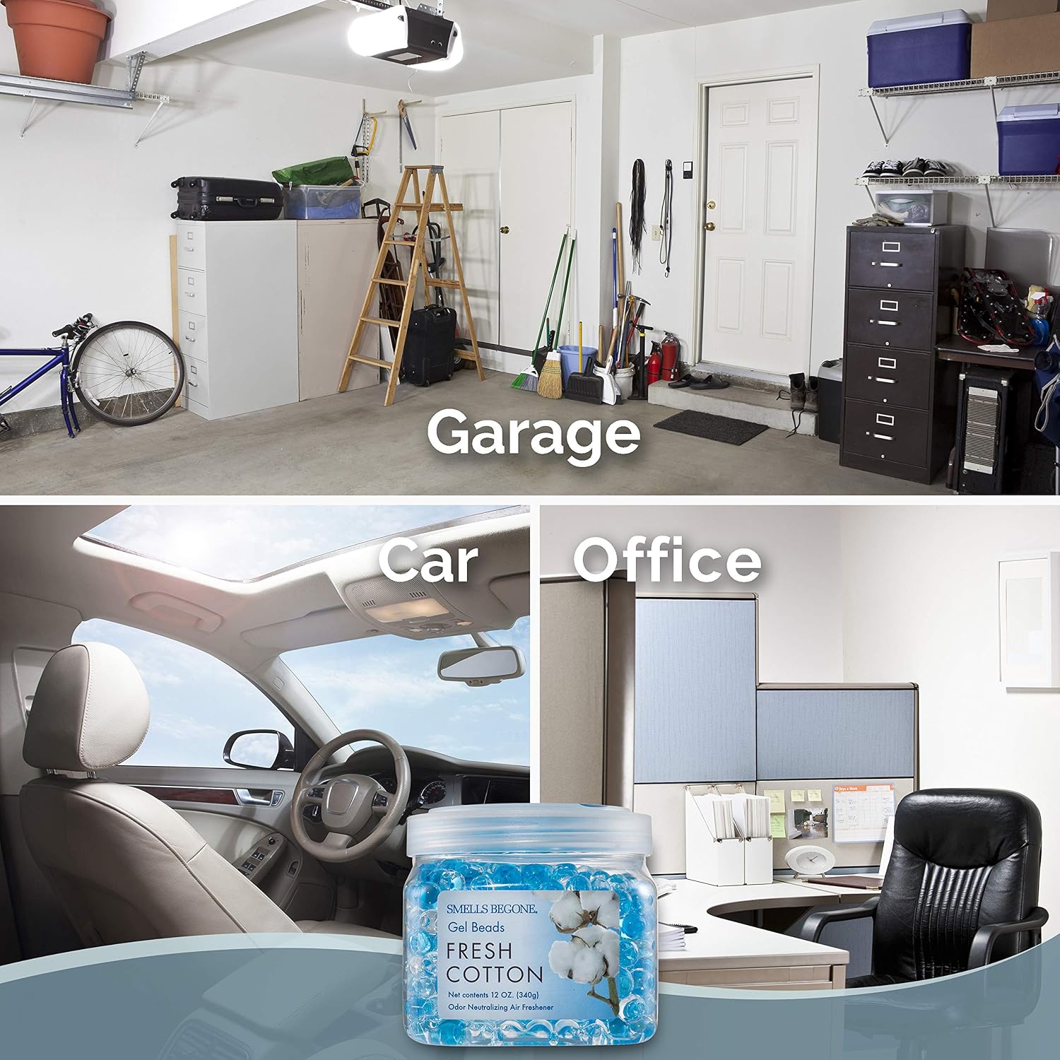 SMELLS BEGONE Odor Eliminator Gel Beads - 12 oz, Pack of 2 - Eliminates Odor in Bathrooms, Cars, Boats, RVs & Pet Areas - Air Freshener - Made with Essential Oils - Fresh Cotton Scent