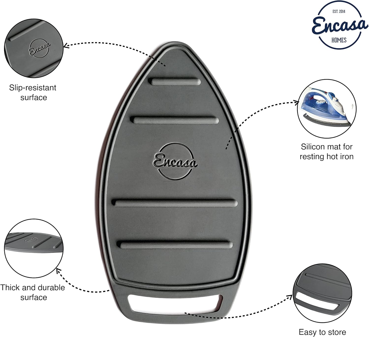Encasa XO Silicon Mat for Hot Iron Rest - Heat Resistant, Anti - Slip, Thicker Pad for Protecting Your Table During Ironing, Non-Burning, Machine Washable, Durable - Grey