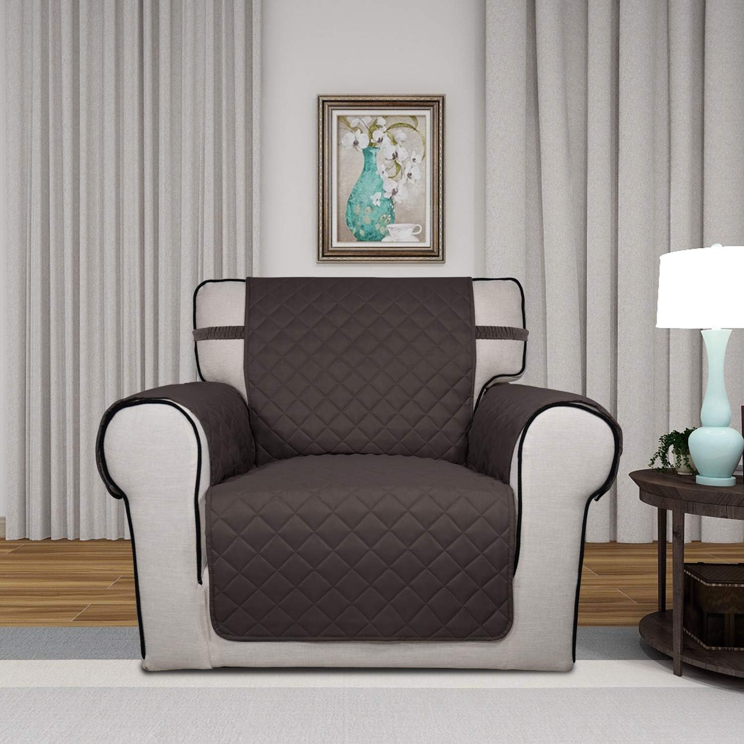 PureFit Reversible Quilted Sofa Cover, Water Resistant Slipcover Furniture Protector, Washable Couch Cover with Non Slip and Elastic Straps for Kids, Pets (Chair, Chocolate/Chocolate)