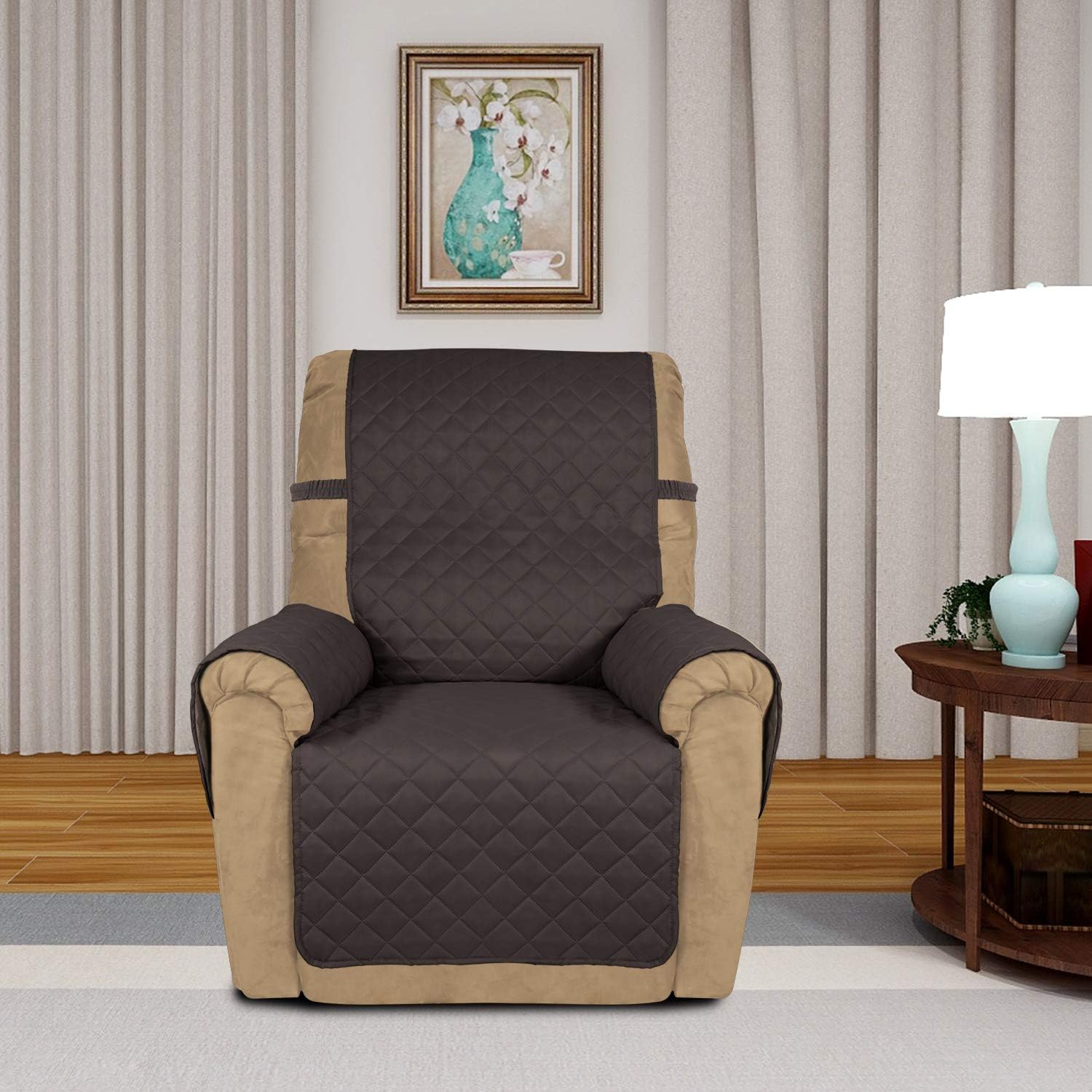 PureFit Reversible Quilted Sofa Cover, Water Resistant Slipcover Furniture Protector, Washable Couch Cover with Non Slip and Elastic Straps for Kids, Dogs, Pets (Small Recliner, Chocolate/Chocolate)