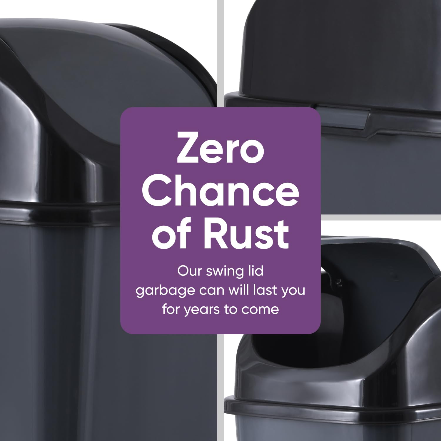 - Zero Chance of Rust - Unlike stainless steel trash cans, this durable and high-quality plastic garbage can, will never rust!