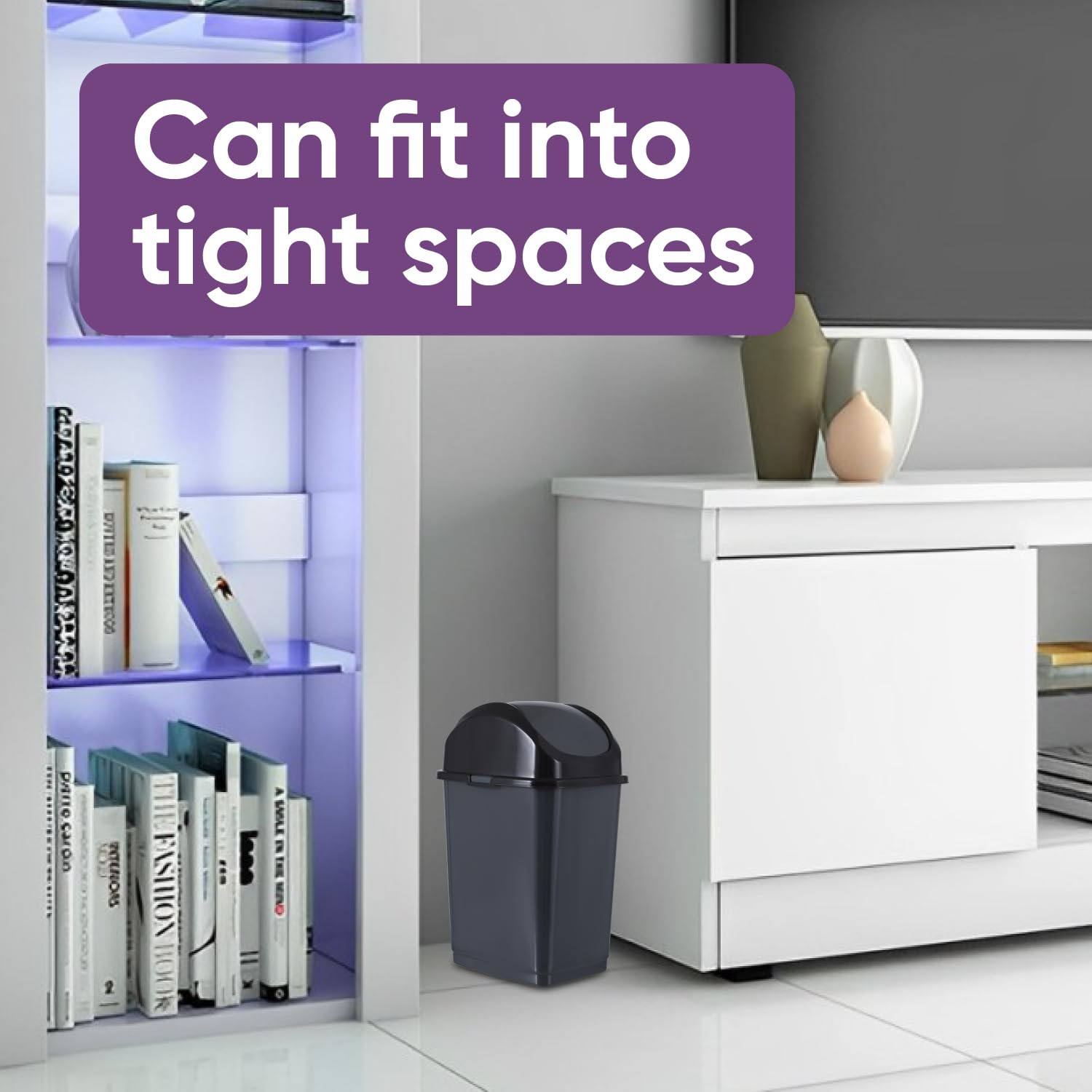 Superio Small 2.5 Gallon Plastic Trash Can with Swing Top Lid, Compact, Slim Waste Bin for Under Desk, Office, Bedroom, Bathroom, Dorm Room, 10 Qt. Portable Garbage Can (Dark Gray, 2