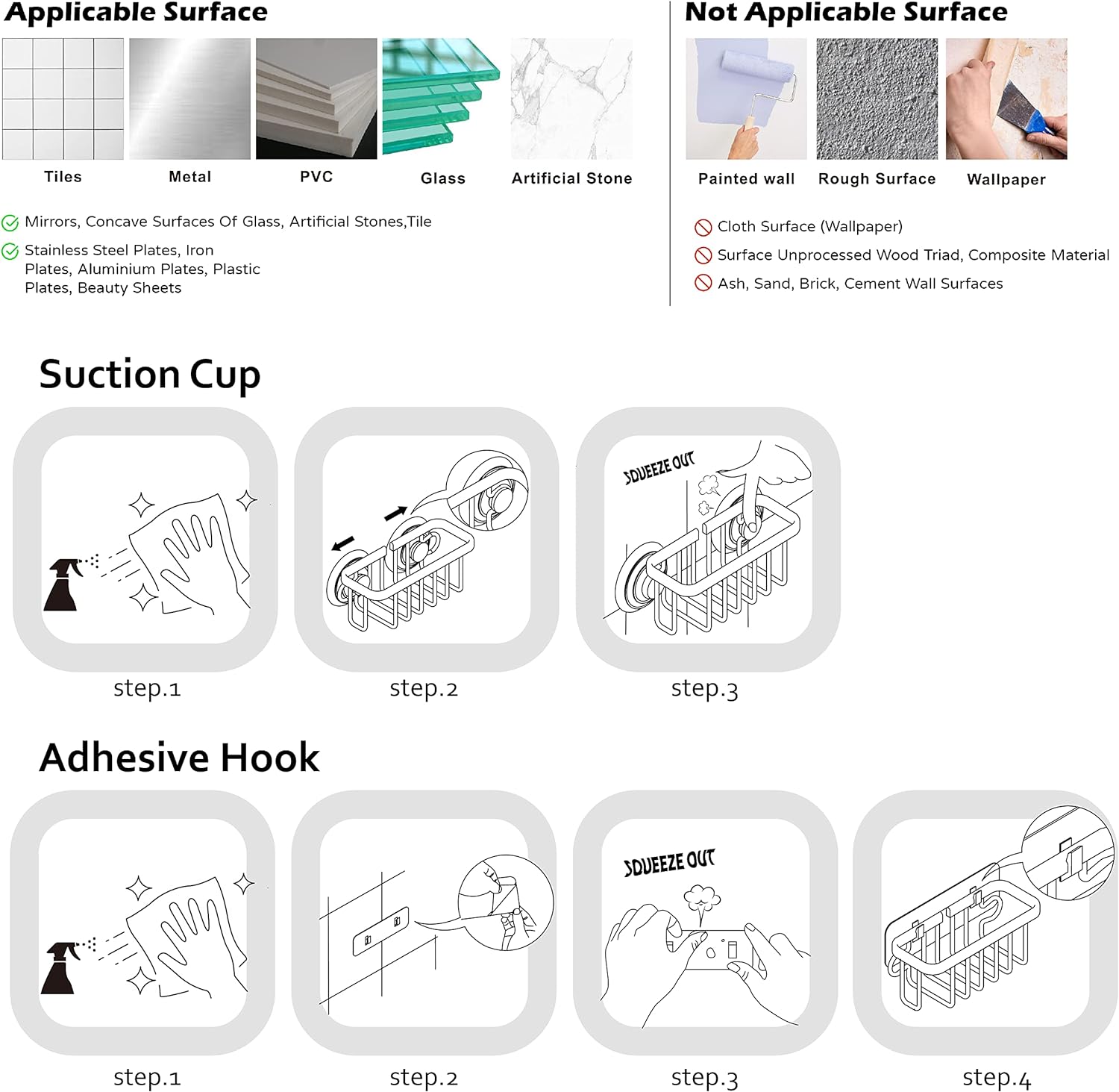 - Important Compatibility Notice: Suction cups are only effective on smooth, non-porous surfaces such as polished tile, stainless steel, or glass. Does NOT stick well to stone, cement, granite, Silgranit, marble, or textured surfaces. Use included adhesive pad for those surfaces.