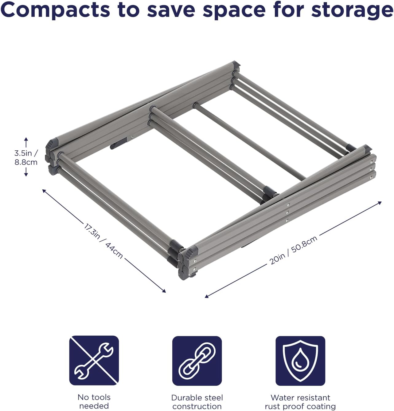 - SPACE-SAVING: Portable drying rack, you can easily fold it flat for compact storage in a closet or next to the washing machine, ready and waiting for next time Collapsed Size: 17" x 21" x 3", Partail Expanded Size: 17" x 41" x 21" Fully Expanded: 30" x 41" x 17"